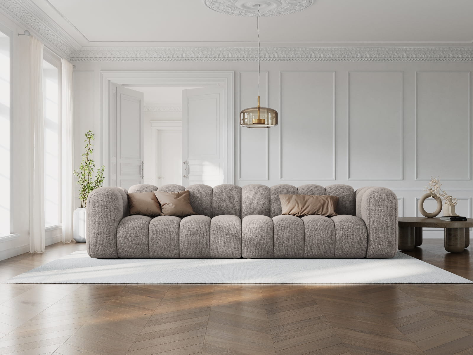 Jeśli kochasz wysublimowane meble o zaokrąglonych sylwetkach, to koniecznie zwróć uwagę na kolekcję sof Lupine. Zachwycają pełnymi kształtami, zapraszając do relaksu, wspólnych rozmów i spędzania czasu na niezwykle wygodnych siedziskach. Na pewno zdobędą twoje serce i zagoszczą w twoim salonie. Wzorniczo futurystyczną, zaokrągloną formę podkreślają głębokie przeszycia, tworząc na powierzchni falisty efekt. Sylwetki mebli są zwarte i wykonane z dbałością o każdy detal. Profilowane oparcia nie przytłaczają wnętrza, lecz otwierają szeroką perspektywę na przestrzeń.