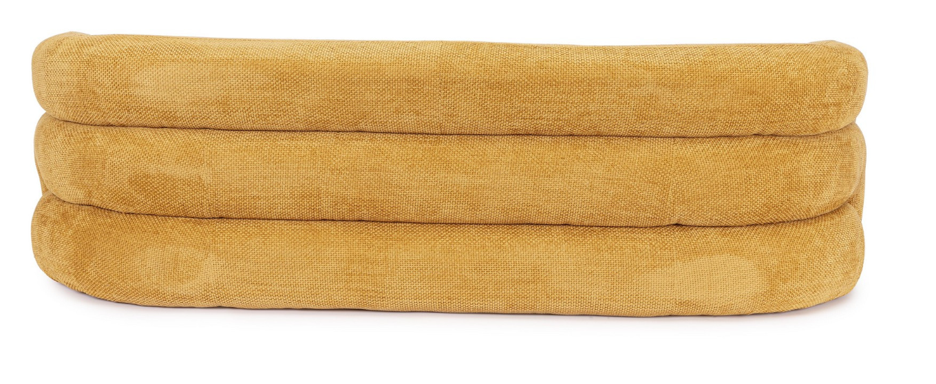 Sofa Clemence w odcieniu Mustard to mebel stworzony, by przełamywać schematy i dodawać wnętrzom życia. Jej masywna, monolityczna bryła o zaokrąglonych krawędziach to ukłon w stronę designu lat 70., który obecnie przeżywa swój wielki powrót w stylu eclectic. Niska, parterowa konstrukcja (tzw. low-profile) o wysokości całkowitej zaledwie 61 cm sprawia, że sofa optycznie nie zabiera przestrzeni, tworząc jednocześnie idealną strefę do swobodnego, nieformalnego wypoczynku.