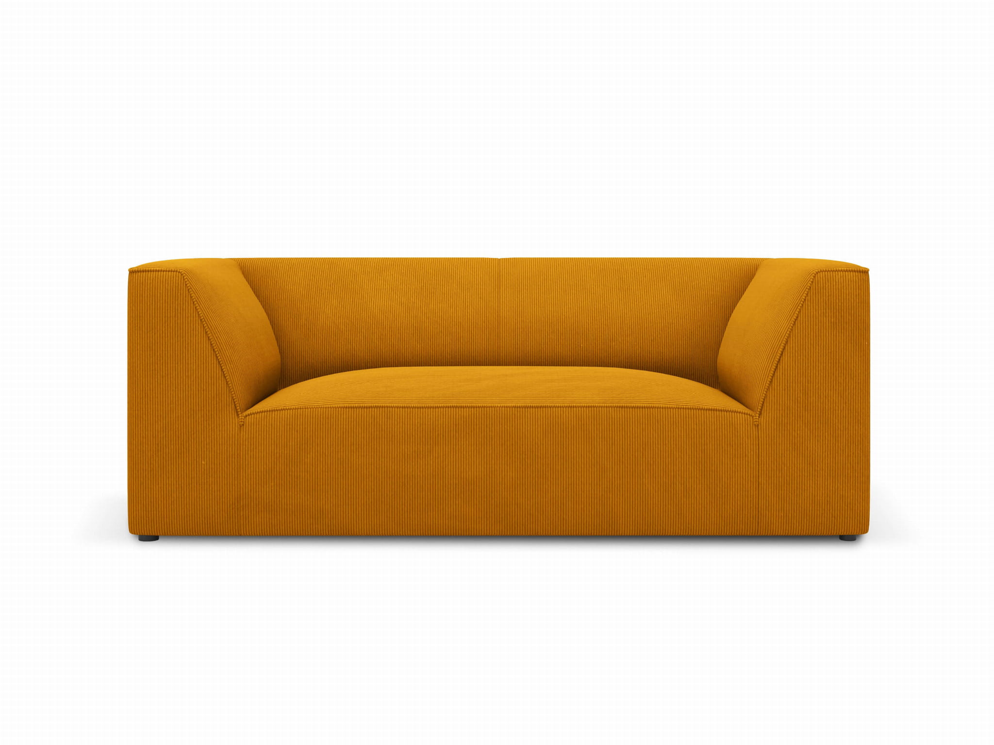 Ruby to nowoczesna, żółta 2-osobowa sofa obita przytulną tkaniną sztruksową.