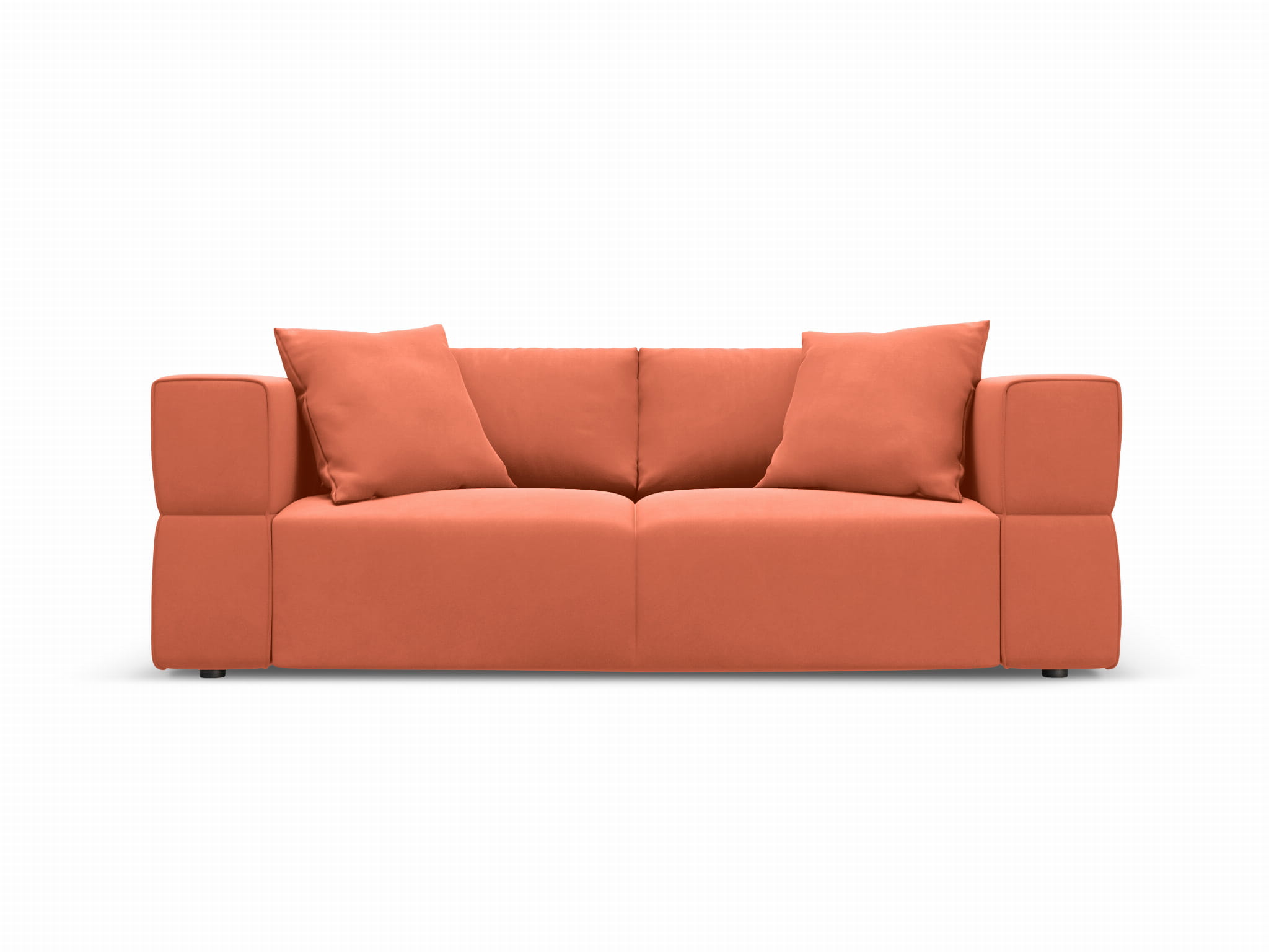 Komponenty: rama z litego drewna sosnowego, płyty wiórowe, płyty pilśniowe, sklejka, sprężyny, czarne plastikowe nogi.