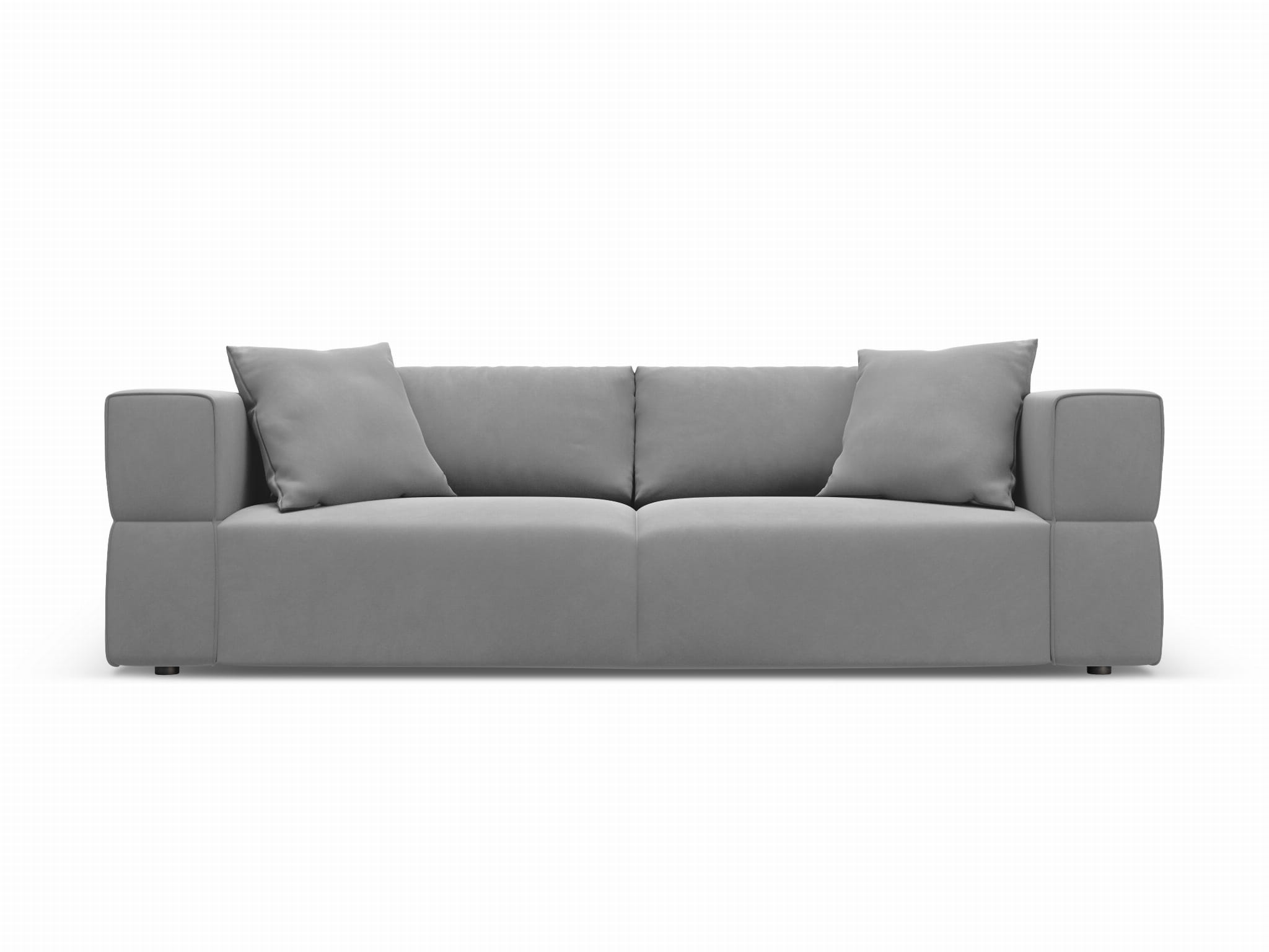 Komponenty: rama z litego drewna sosnowego, płyty wiórowe, płyty pilśniowe, sklejka, sprężyny, czarne plastikowe nogi.
