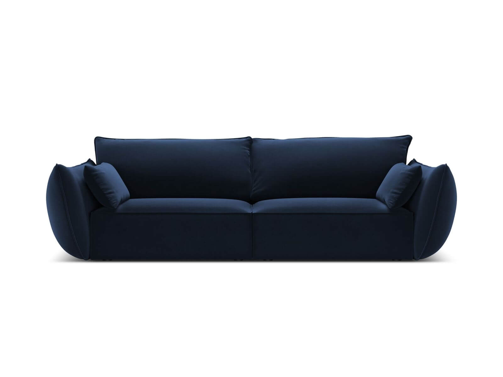 3-osobowa kanapa tapicerowana jest syntetyczną, ciemno niebieską tkaniną imitującą aksamit - Bluvel 86. Delikatny połysk materiału sprawia, że jest on dobrym wyborem do eleganckich projektów wnętrz.