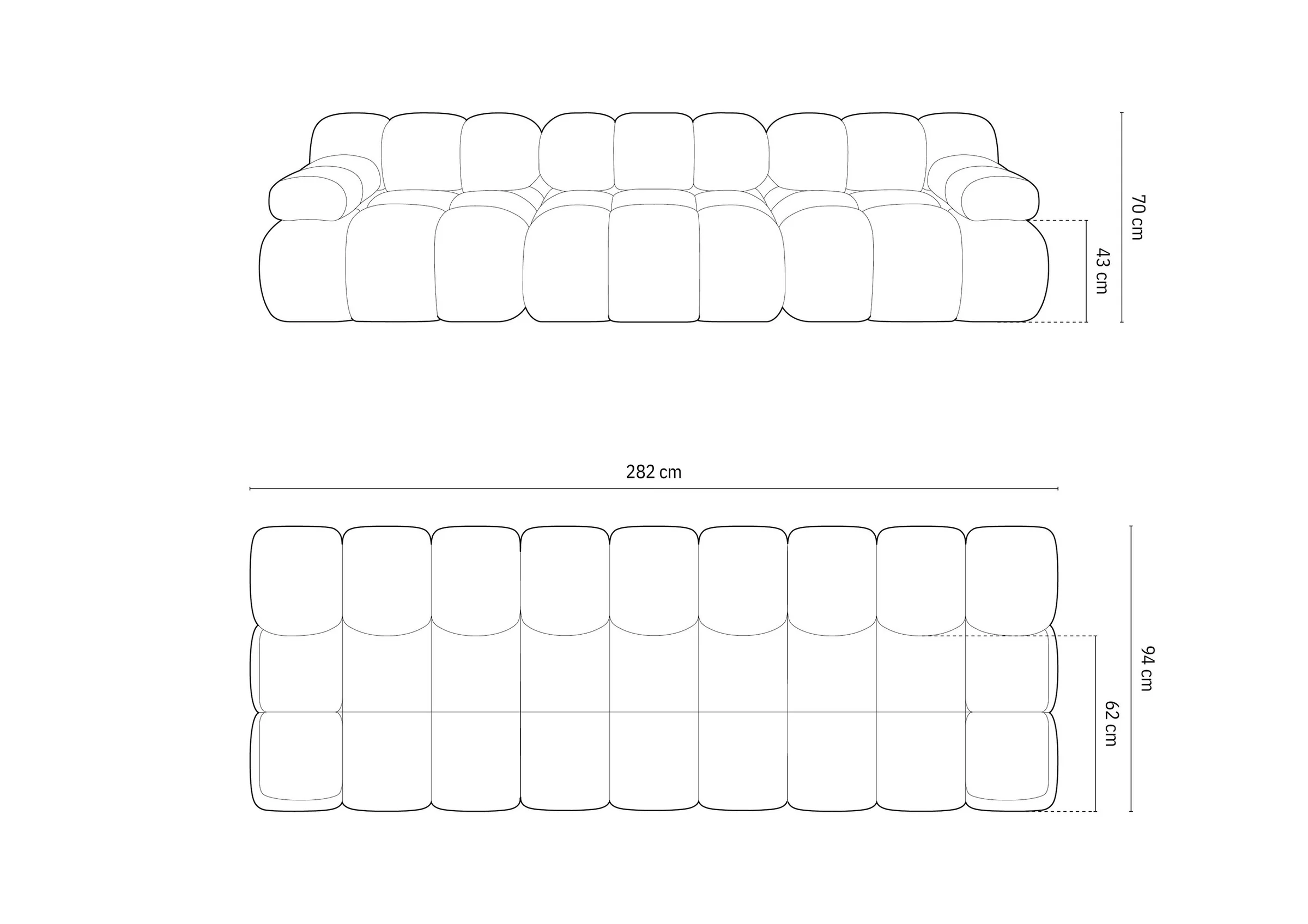 Sylwetki sof, inspirowane innowacyjnym projektem z lat 70., perfekcyjnie łączą się z ponadprzeciętnym komfortem. Forma mebla jest niesamowicie przytulna, a „baloniaste” moduły wydają się jednocześnie miękkie i sprężyste. Ich wyjątkowość wynika m.in. z licznych, efektownych marszczeń na tapicerce. Śmiałe połączenie stylów nikogo nie pozostawia obojętnym. Kubiczne kształty z zaokrąglonymi krawędziami są eleganckie, ale mają w sobie szczyptę nonszalancji. Wielość modułów pozwala ci na tworzenie indywidualnych kombinacji dopasowanych do wnętrza i twoich estetycznych potrzeb.