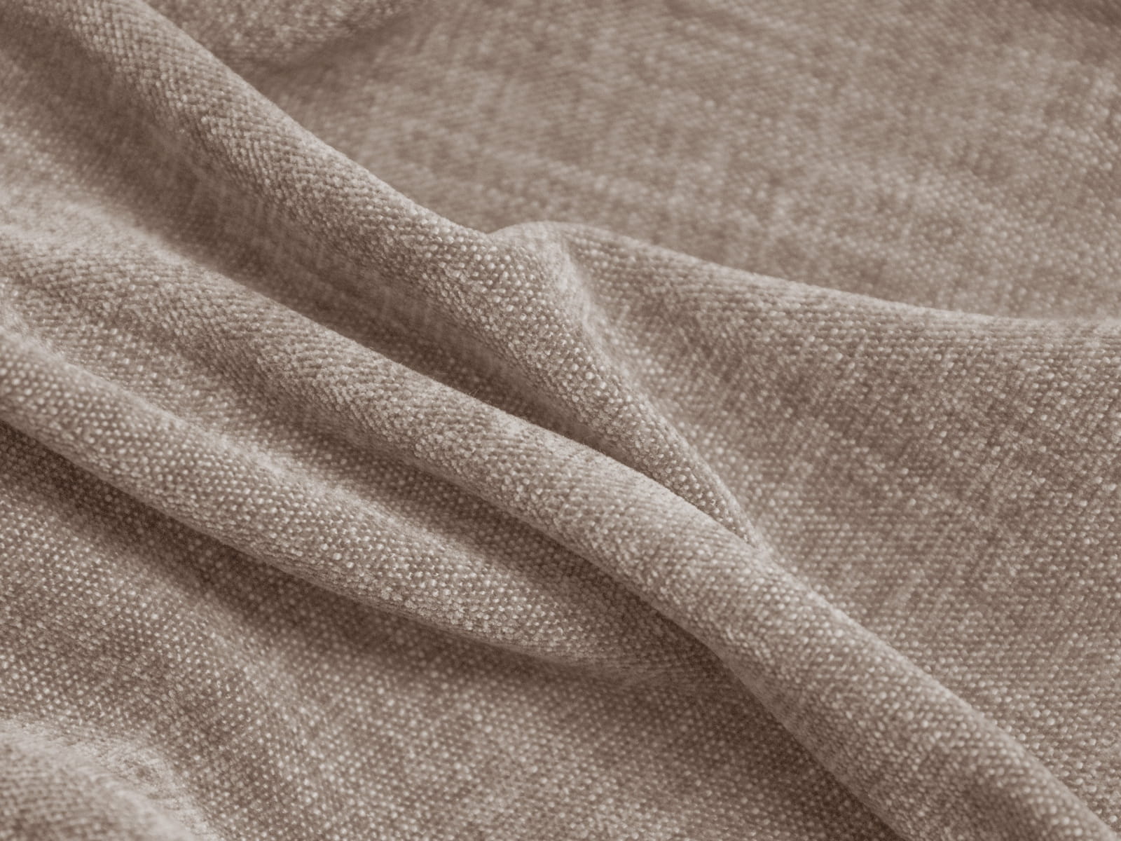 Obicie sofy wykonane jest z tkaniny Boston Trufa, która wyróżnia się wyjątkową miękkością i subtelnym splotem. Strukturalna powierzchnia przypomina welwet, a delikatne przeploty tworzą efekt nieregularnych przetarć, nadając tkaninie głębię i niepowtarzalny wygląd. Materiał jest niezwykle przyjemny w dotyku, a jednocześnie bardzo wytrzymały i odporny na ścieranie, co sprawia, że sofa przez długi czas zachowa swój nieskazitelny wygląd.