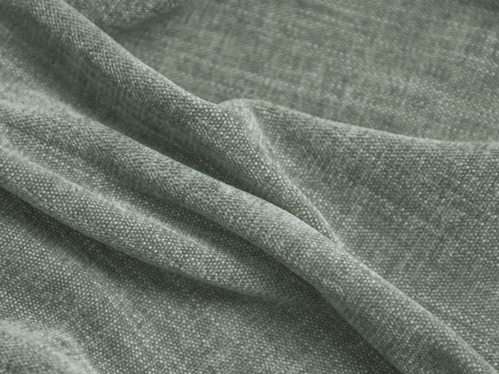 Obicie sofy wykonane jest z tkaniny Boston Water Green, która wyróżnia się wyjątkową miękkością i subtelnym splotem. Strukturalna powierzchnia przypomina welwet, a delikatne przeploty tworzą efekt nieregularnych przetarć, nadając tkaninie głębię i niepowtarzalny wygląd. Materiał jest niezwykle przyjemny w dotyku, a jednocześnie bardzo wytrzymały i odporny na ścieranie, co sprawia, że sofa przez długi czas zachowa swój nieskazitelny wygląd.