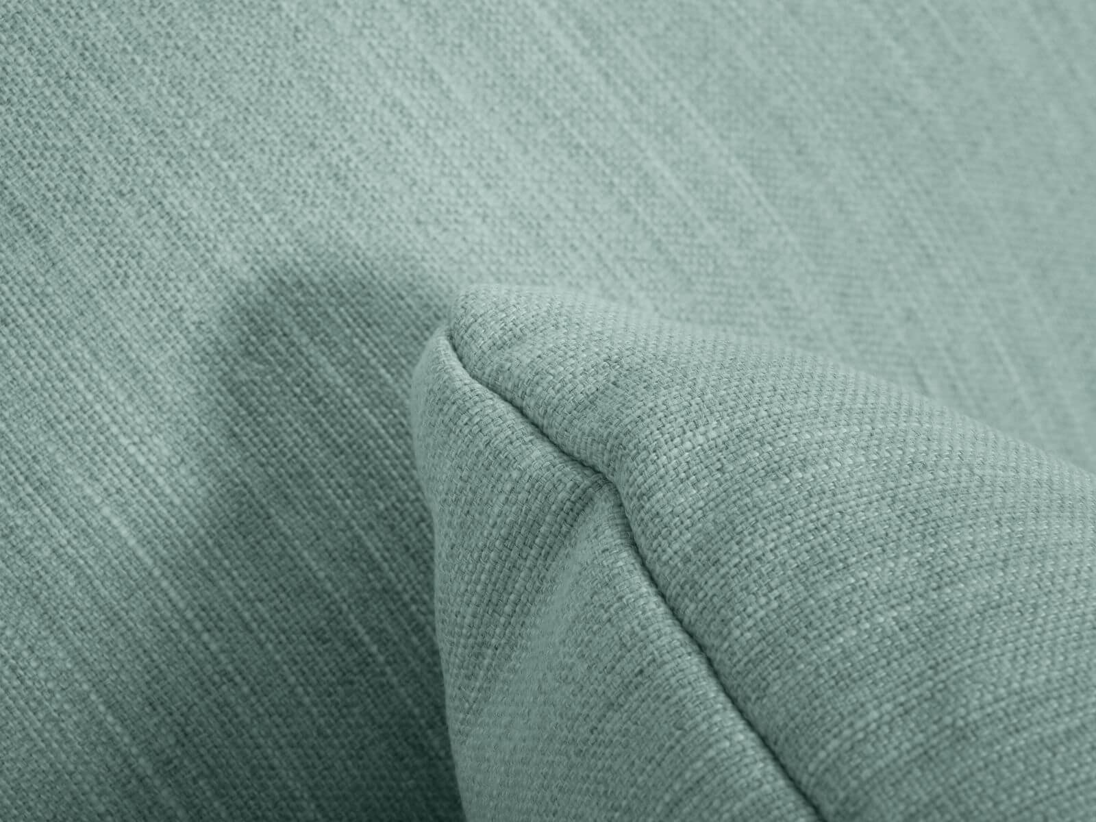 Naturalny wygląd tkaniny imitującej len sprawia, że ten miętowy narożnik to rewelacyjny wybór do przytulnego salonu w stylu rustykalnym, boho czy skandynawskim.