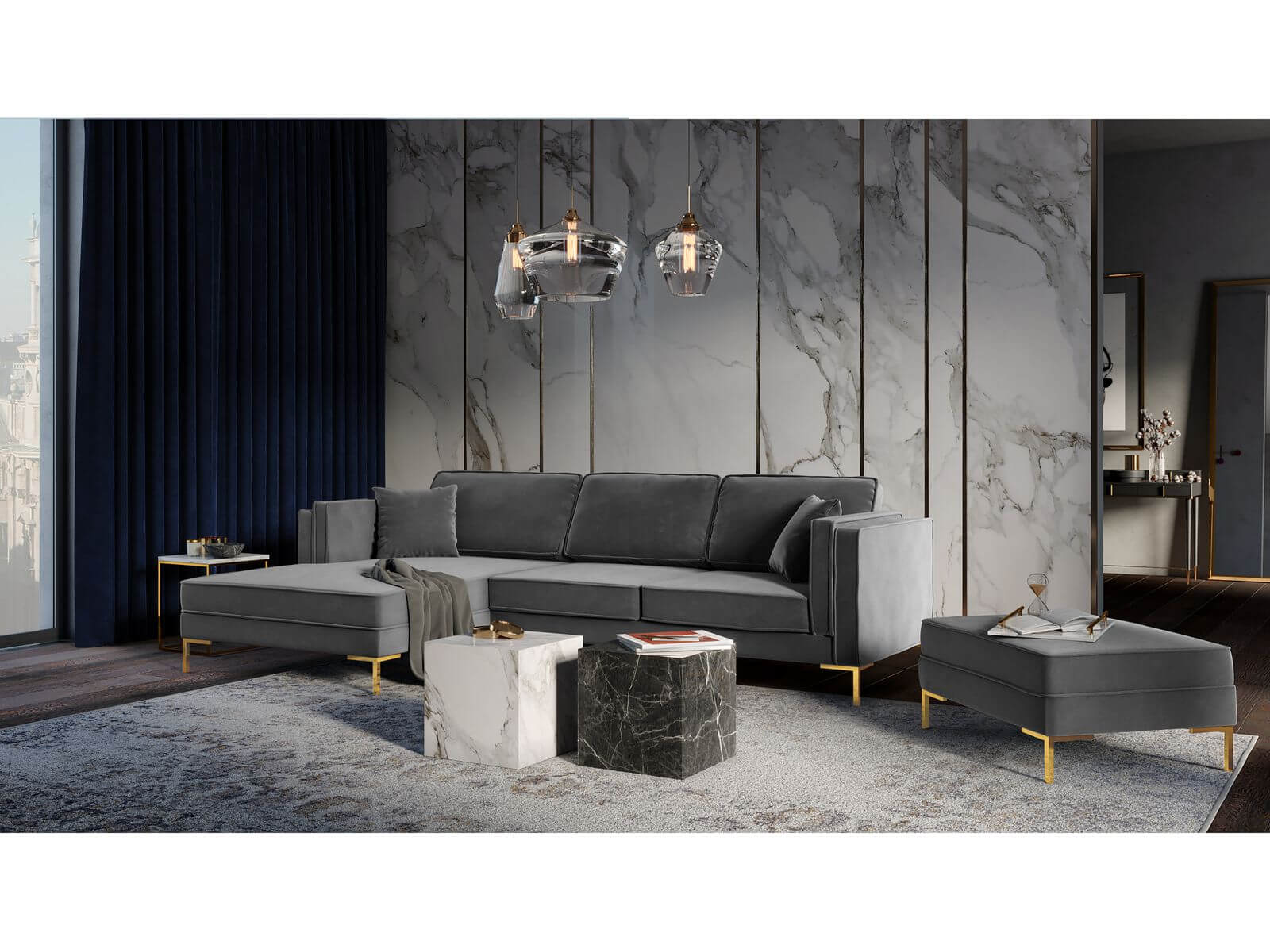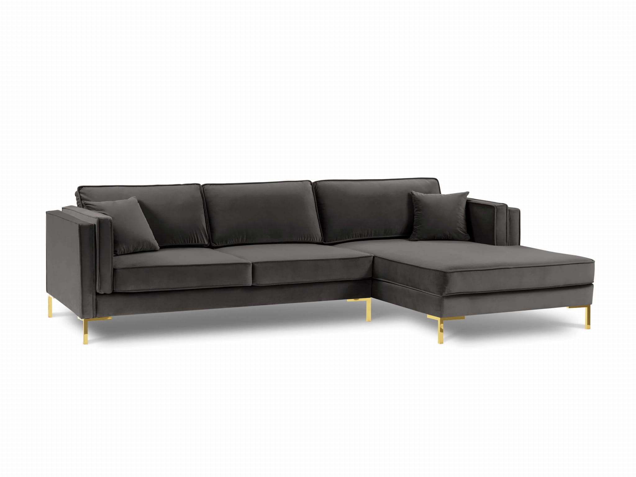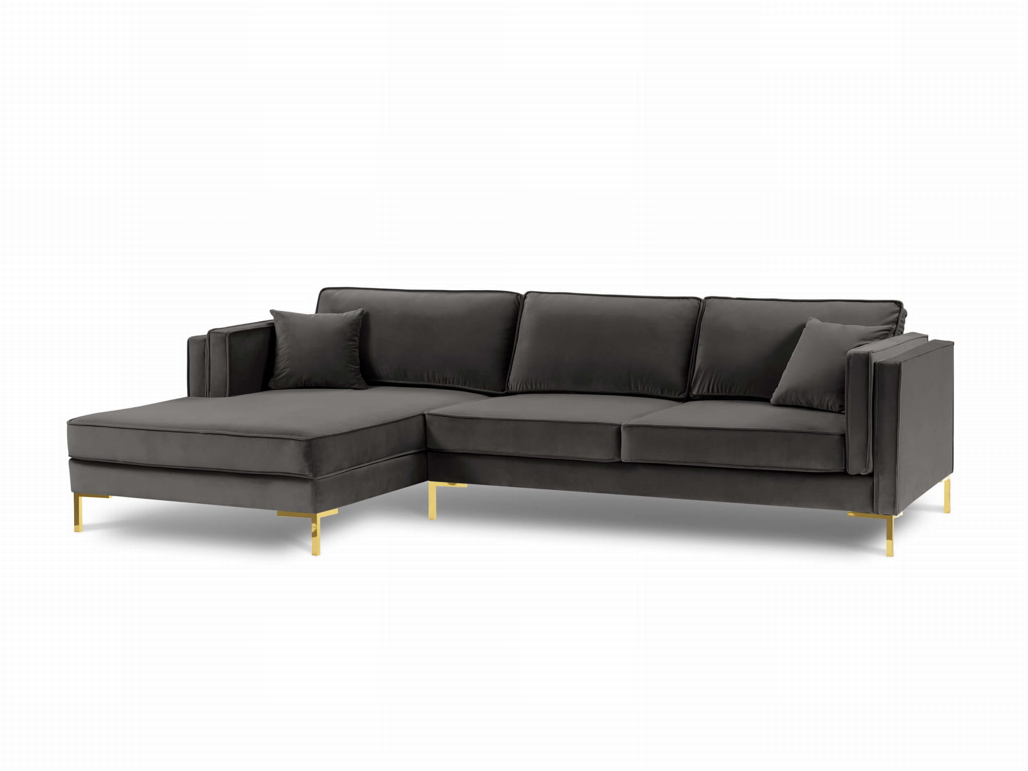 Sofa narożna Luis ciemno szary aksamit na złotych nóżkach