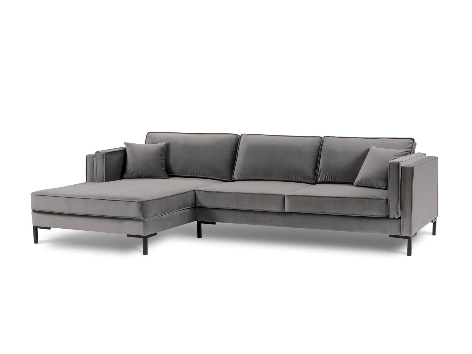 Sofa narożna Luis jasno szary aksamit na czarnych nóżkach