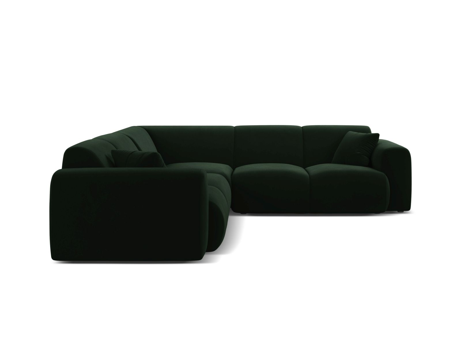 Sofa narożna symetryczna Molino – butelkowa zieleń i obłe kształty