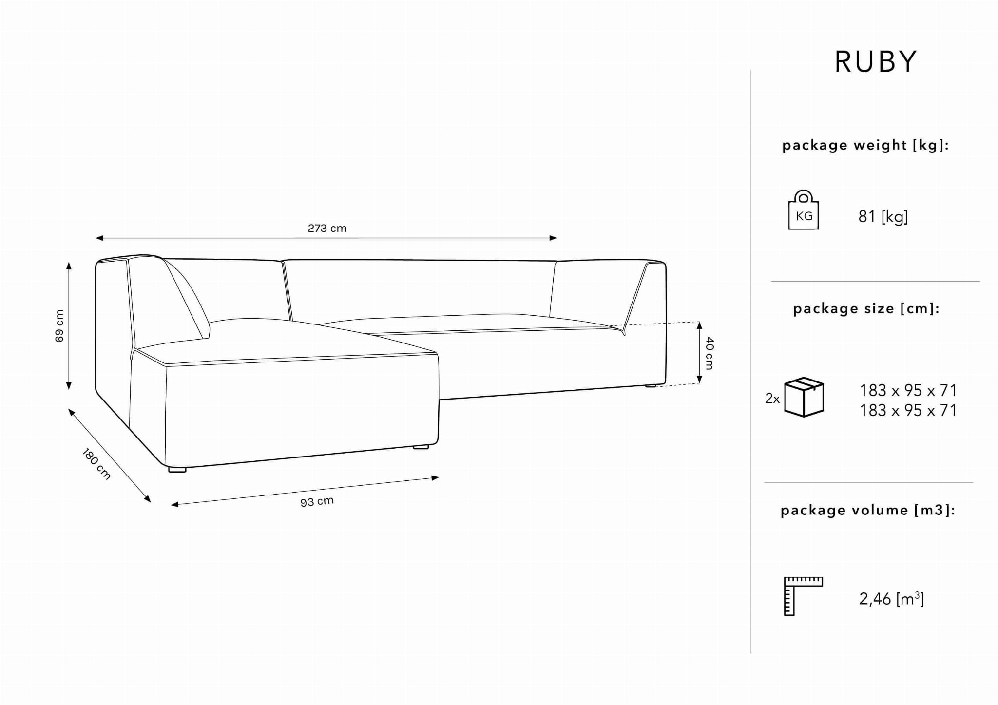 Sofa narożna Ruby jasno niebieski sztruks