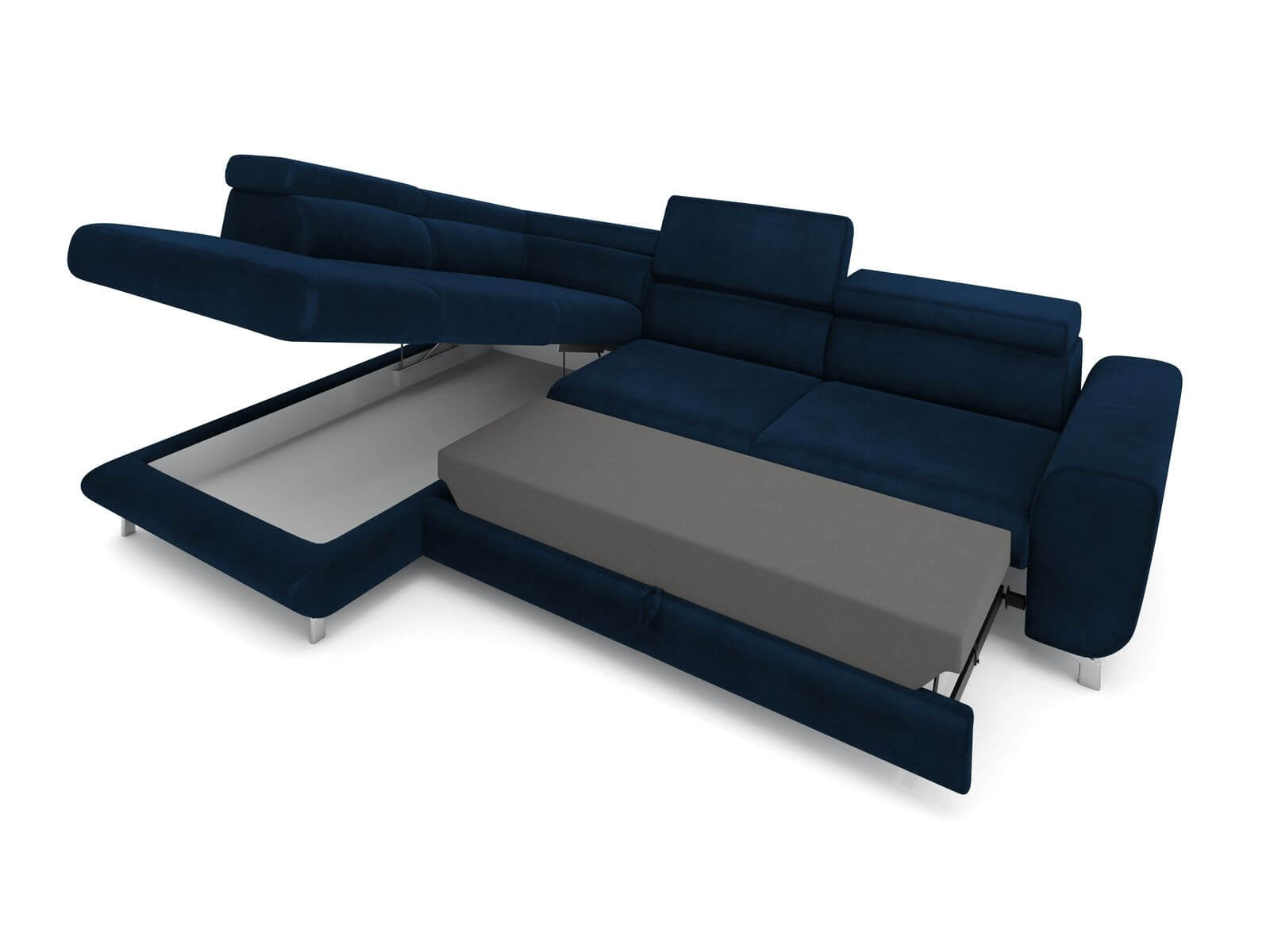 Sofa narożna rozkładana Mario atramentowa na srebrnych nóżkach