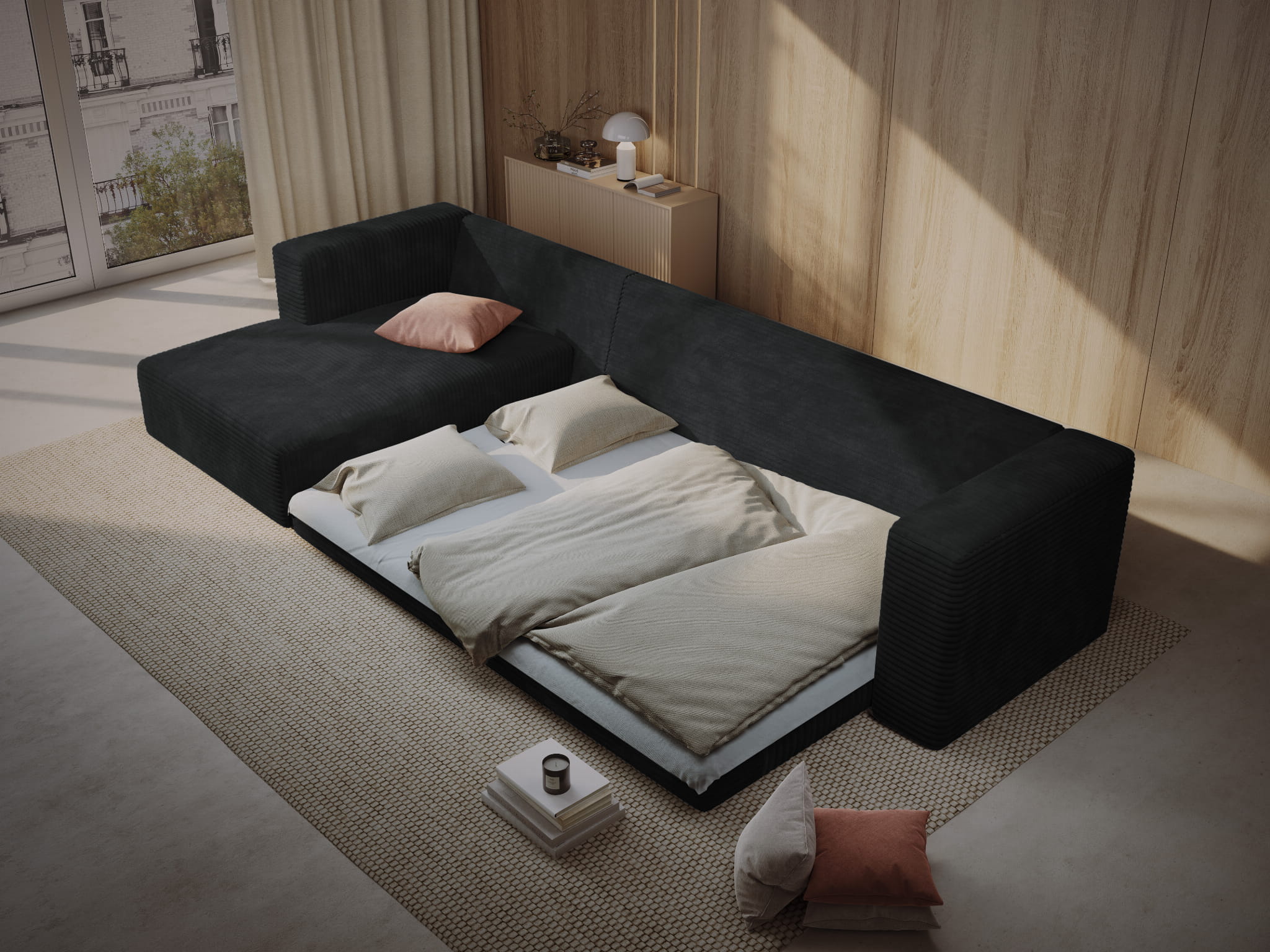 Sofa narożna z funkcją spania Diego czarna