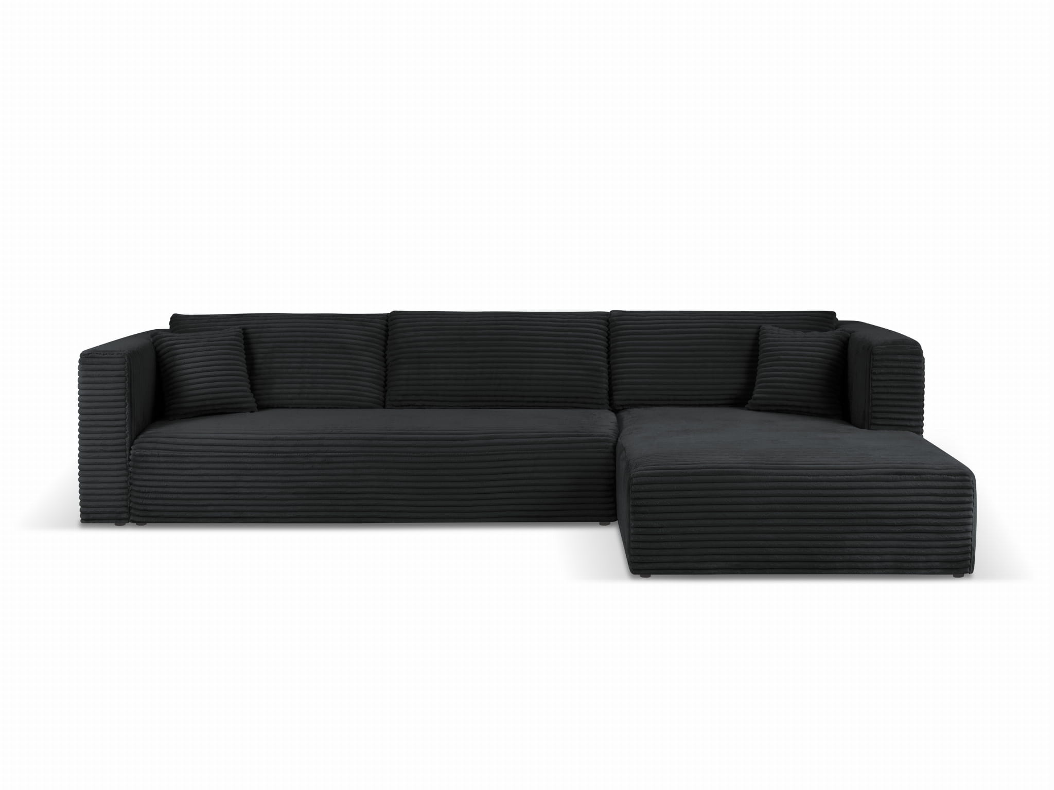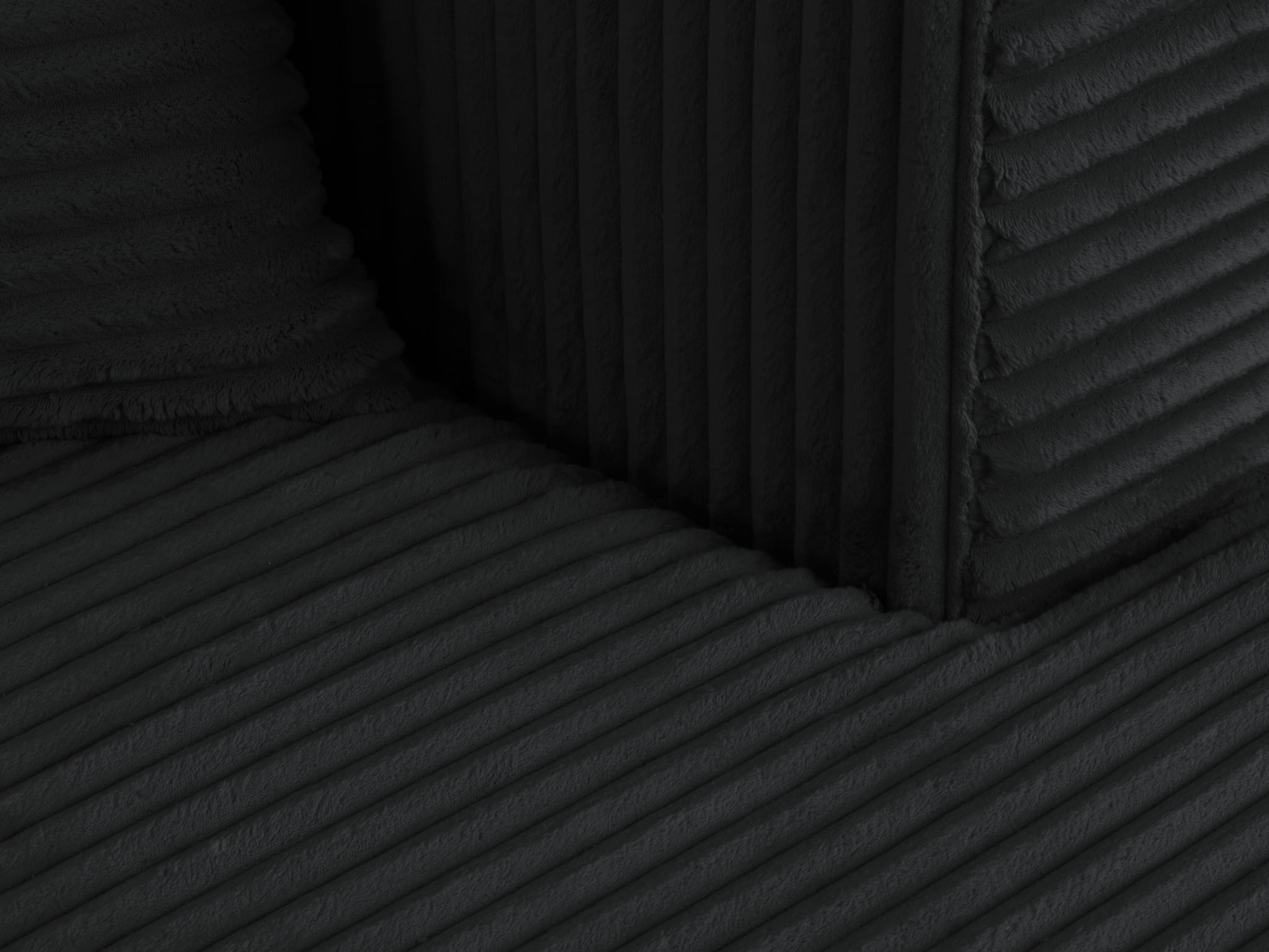 Sofa Diego jest tapicerowana tkaniną Mega Black. Pluszowa dzianina Mega wyróżnia się niesamowitą przytulnością. Długie, gęste włoski są bardzo przyjemne w dotyku. Kontakt z jej puszystą, miękką powierzchnią jest wyjątkowym doświadczeniem sensorycznym. Nie mniej spektakularny jest efekt wizualny, ponieważ materiał ma wygląd grubego sztruksu o bardzo szerokich prążkach. Runo układa się swobodnie tworząc delikatne cieniowanie. Na dużych powierzchniach mebli tkanina Mega prezentuje się wręcz awangardowo.