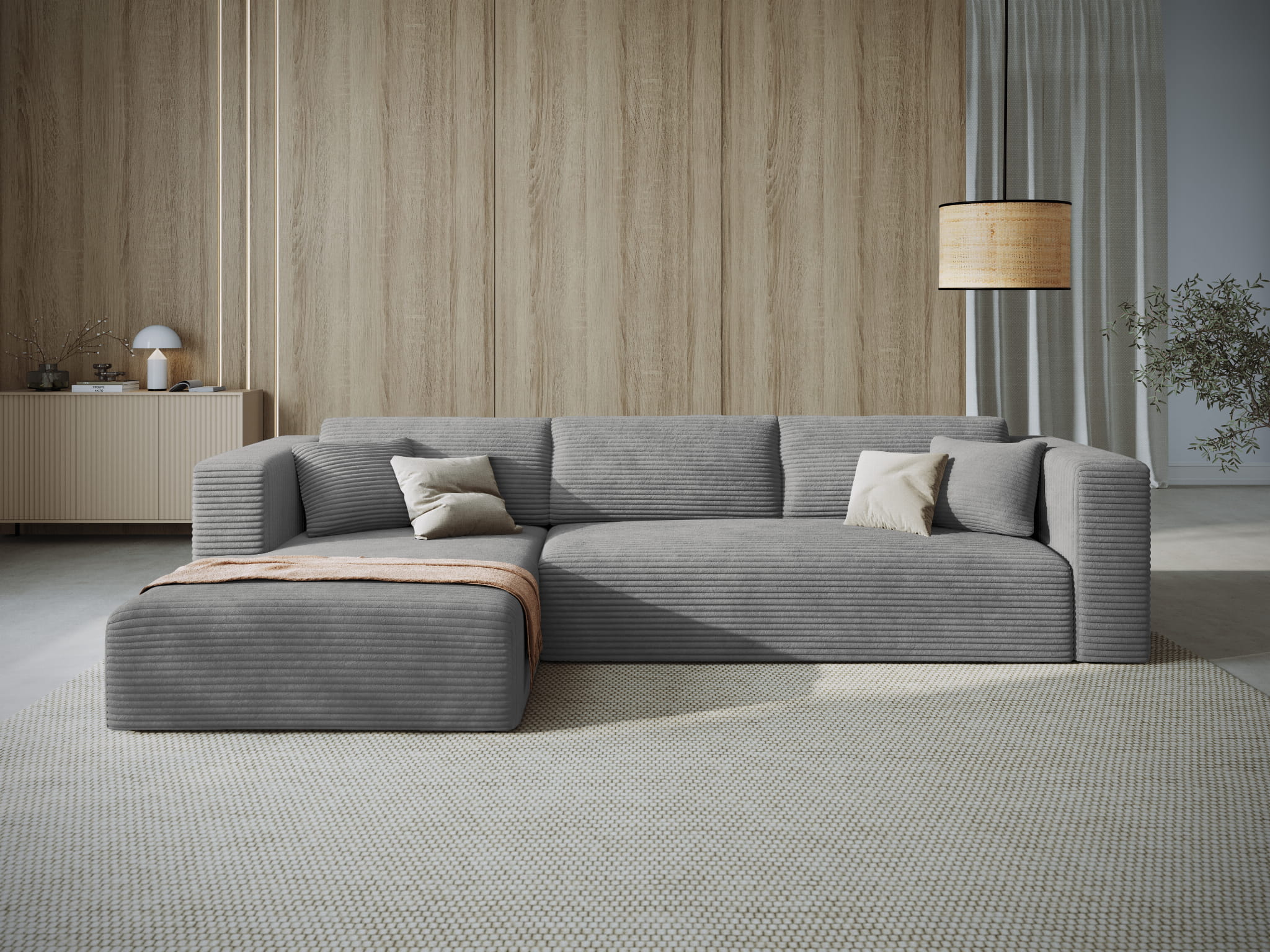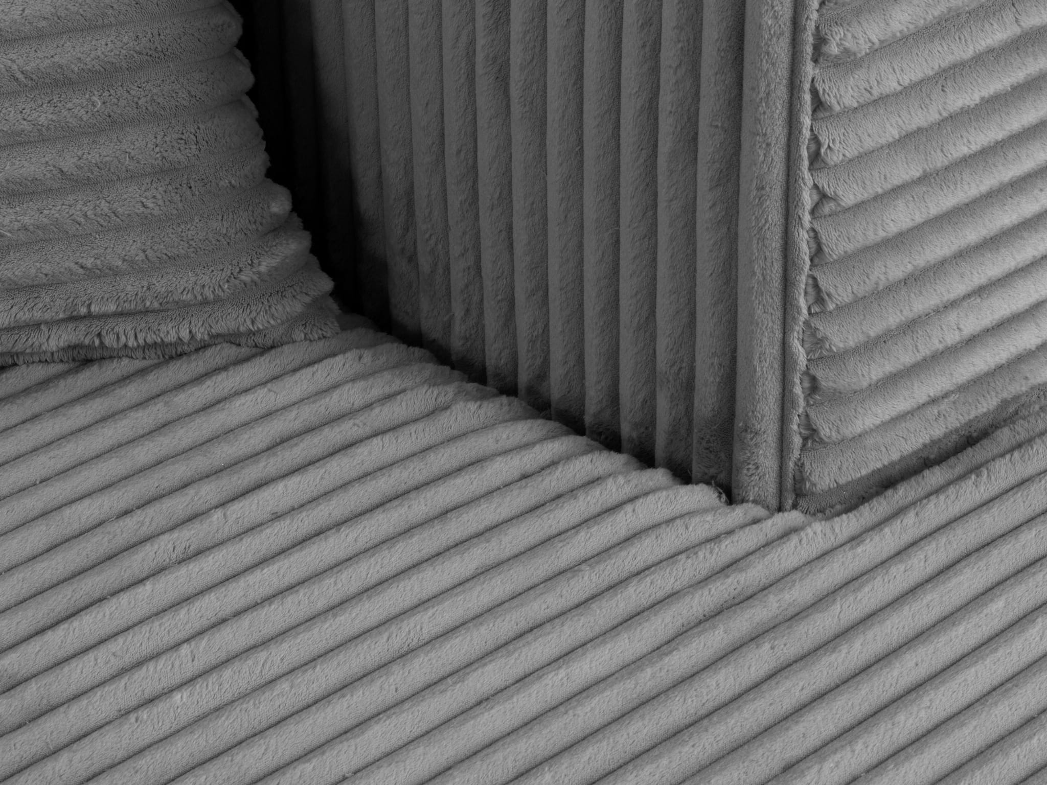 Sofa Diego jest tapicerowana tkaniną Mega Fog. Pluszowa dzianina Mega wyróżnia się niesamowitą przytulnością. Długie, gęste włoski są bardzo przyjemne w dotyku. Kontakt z jej puszystą, miękką powierzchnią jest wyjątkowym doświadczeniem sensorycznym. Nie mniej spektakularny jest efekt wizualny, ponieważ materiał ma wygląd grubego sztruksu o bardzo szerokich prążkach. Runo układa się swobodnie tworząc delikatne cieniowanie. Na dużych powierzchniach mebli tkanina Mega prezentuje się wręcz awangardowo.