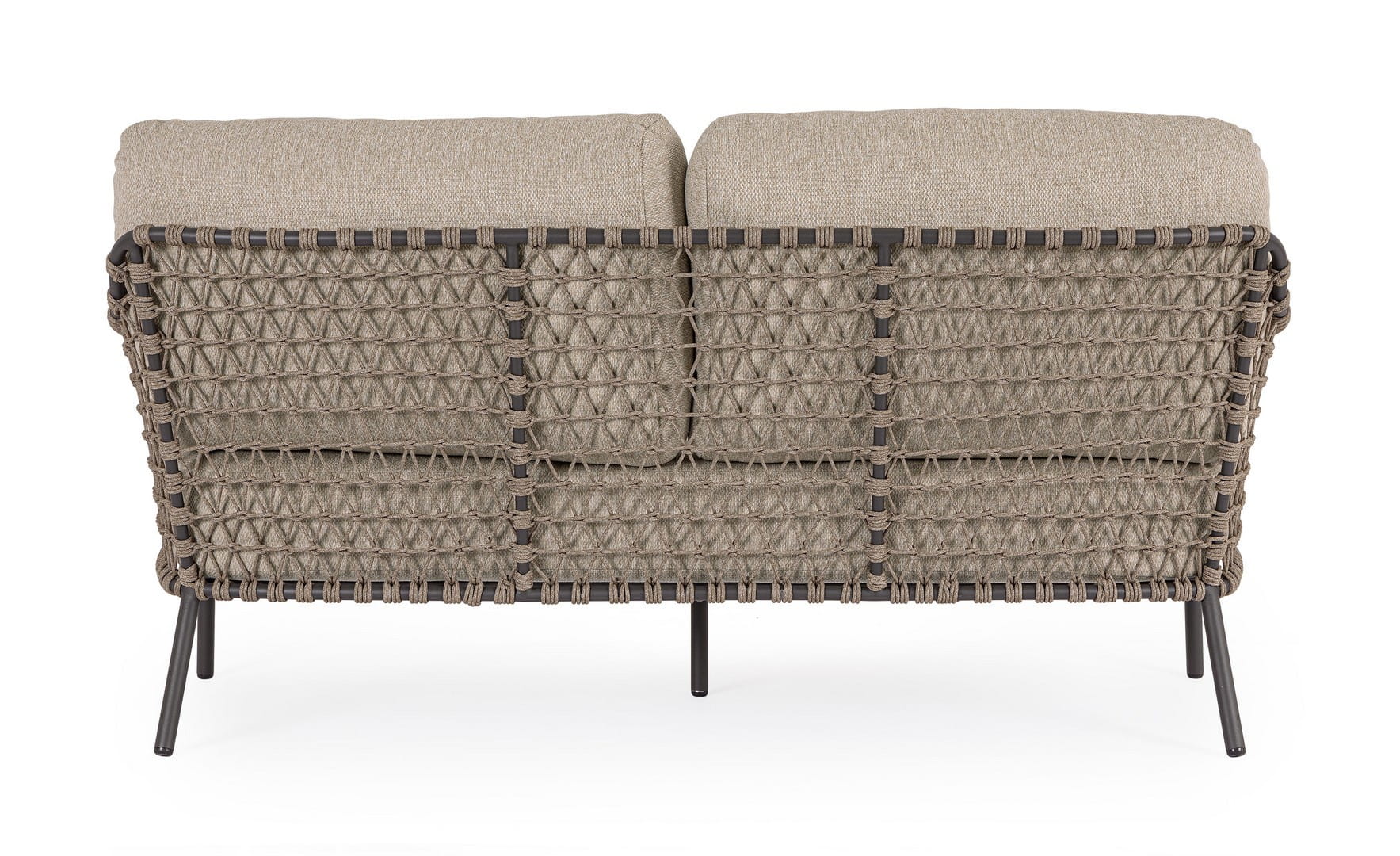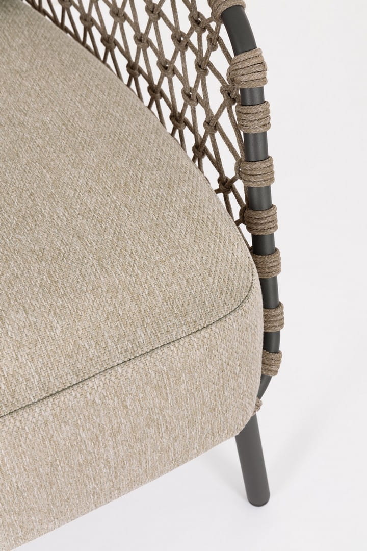 Ivissa przyciąga wzrok ażurowymi bokami wykonanymi z ręcznie plecionej liny polipropylenowej, odpornej na warunki atmosferyczne. Jej lekka, ale solidna konstrukcja ze stali nierdzewnej (typ 201) gwarantuje stabilność i odporność na korozję, nawet przy intensywnym użytkowaniu na zewnątrz.