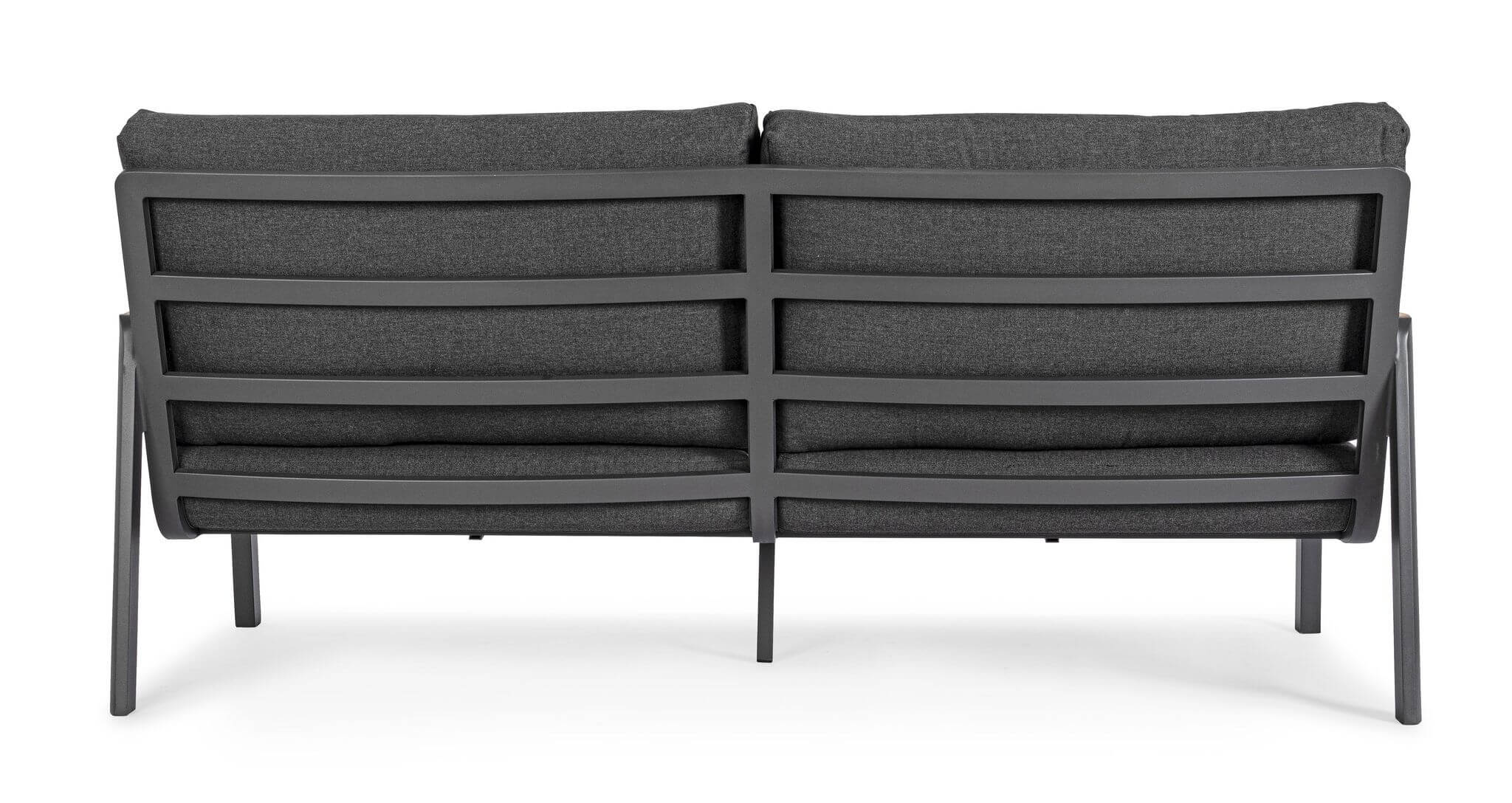 Konstrukcja industrialnej sofy ogrodowej wykonana jest z aluminium pokrytego poliestrową powłoką, co zapewnia trwałość i odporność na warunki atmosferyczne.