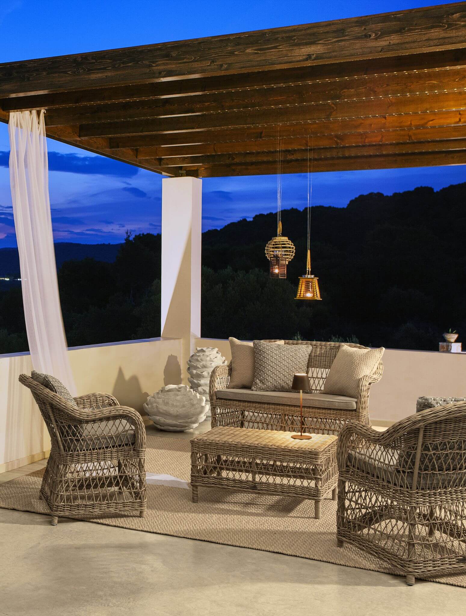 Pełna uroku dwuosobowa sofa ogrodowa wykonana z technorattanu - doda tarasowi wyjątkowego stylu i przytulności. Projektu włoskiej marki Bizzotto.