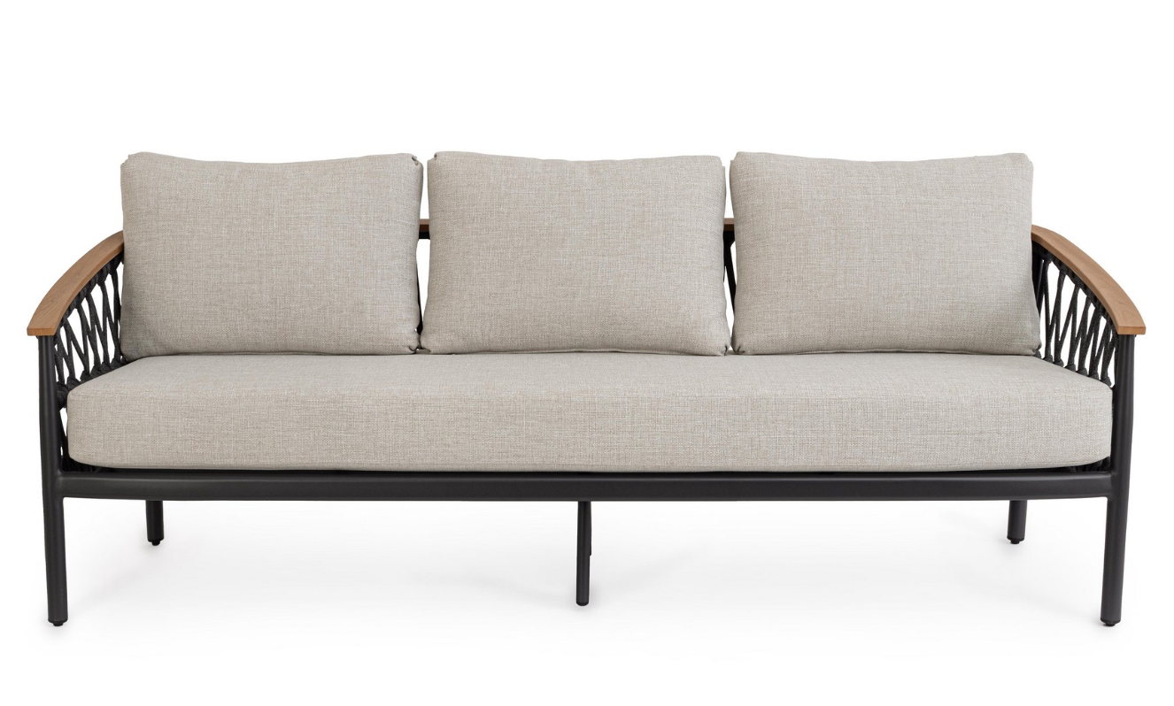 Sofa o szerokości aż 205 cm zapewnia mnóstwo przestrzeni dla trzech dorosłych osób. Zintegrowane regulowane stopki pozwalają na idealne wypoziomowanie mebla, co czyni ten projekt od włoskiej marki Bizzotto rozwiązaniem idealnym na każdą nawierzchnię.