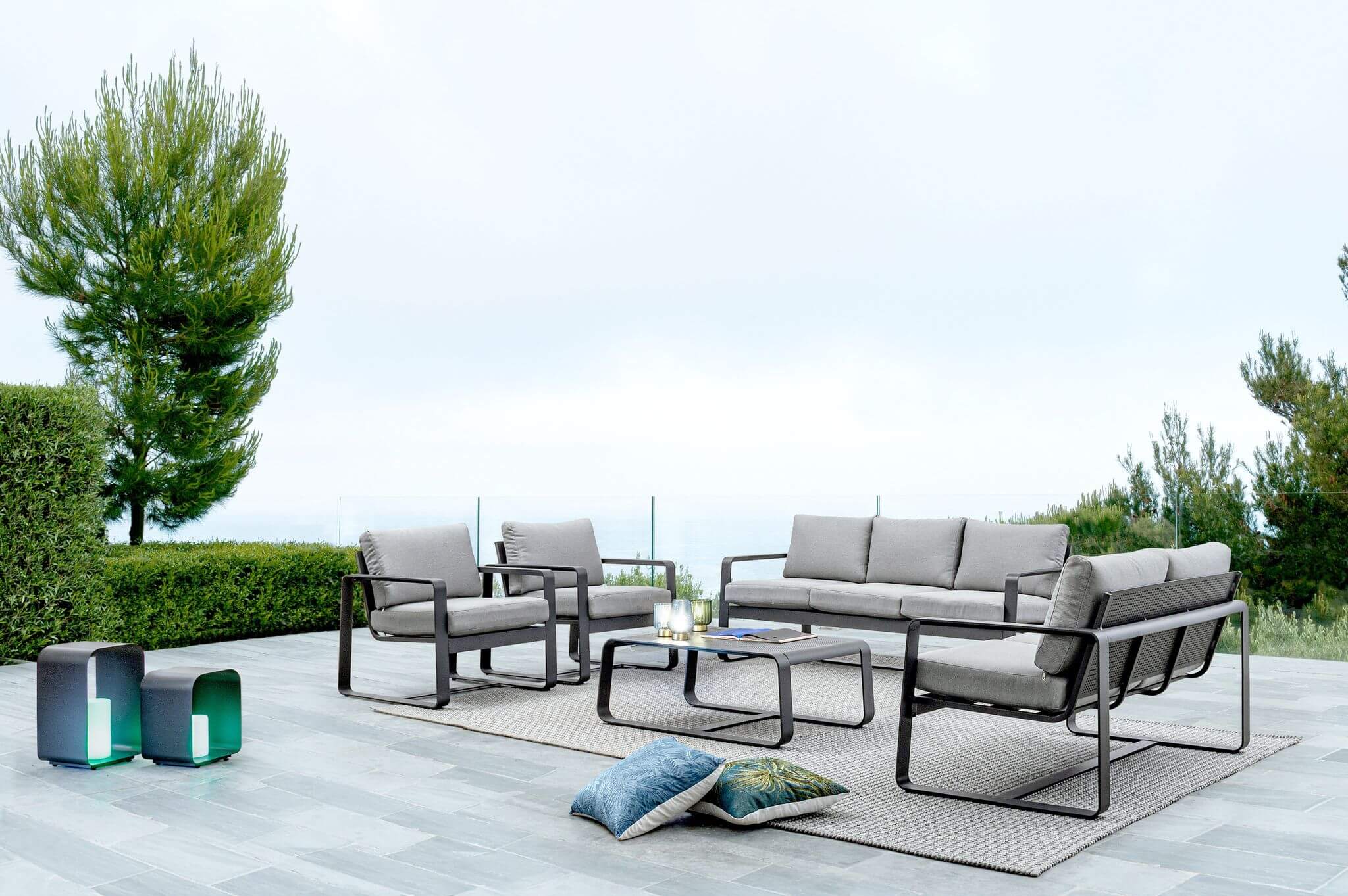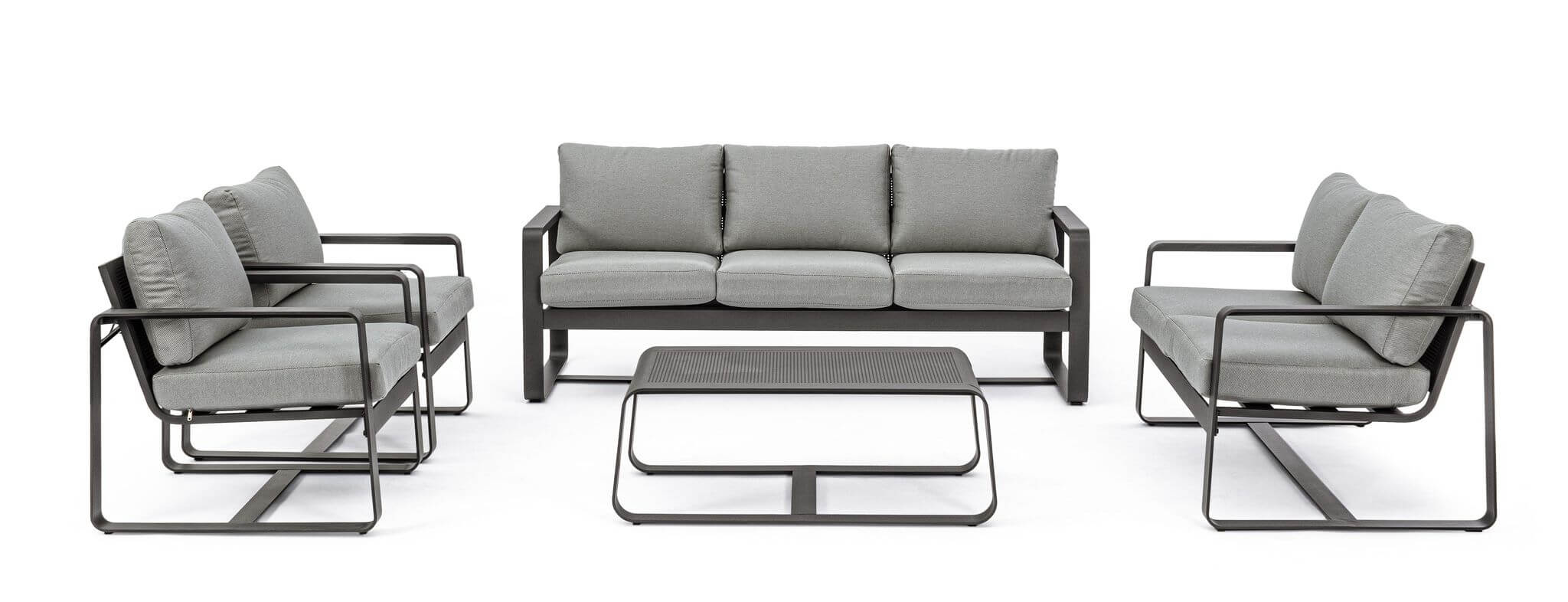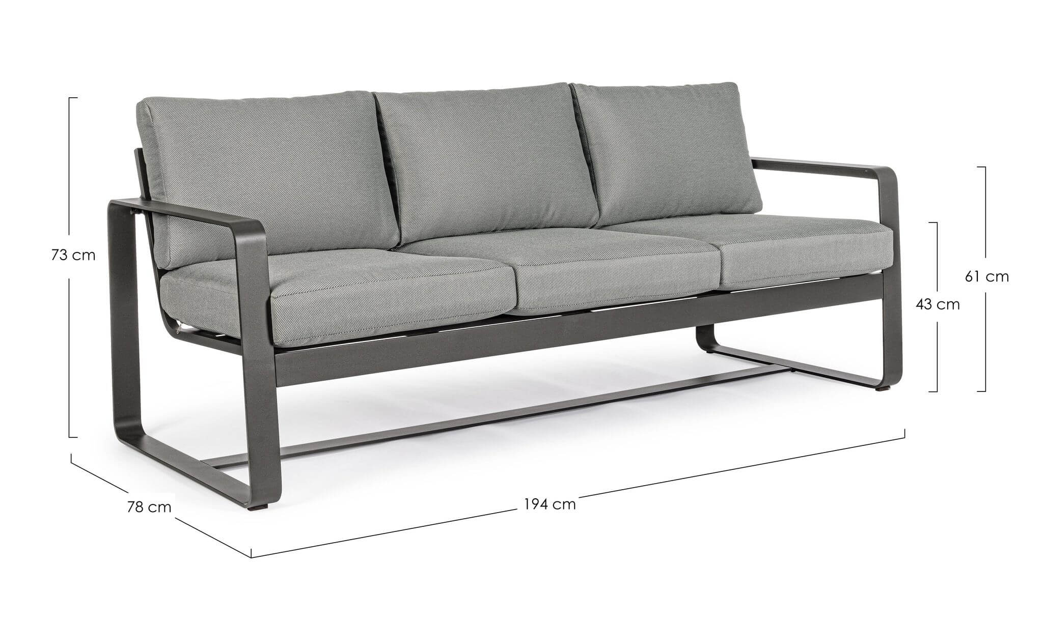 Prezentujemy stylową, antracytową trzyosobową sofę do ogrodu Merrigan, zaprojektowaną przez włoską markę Bizzotto.