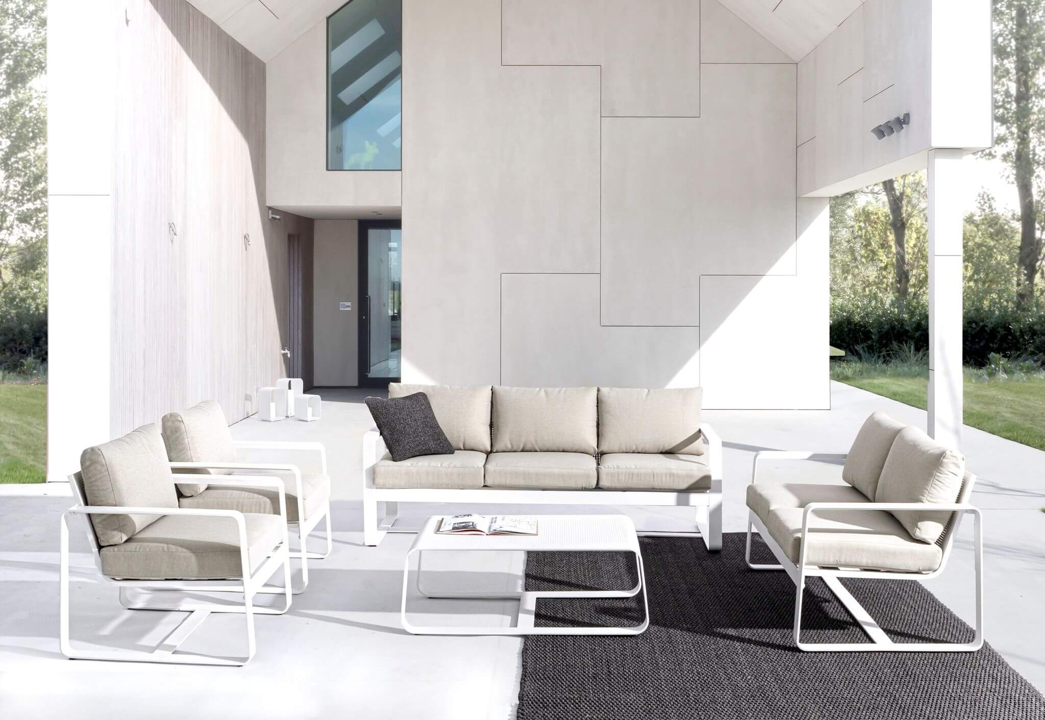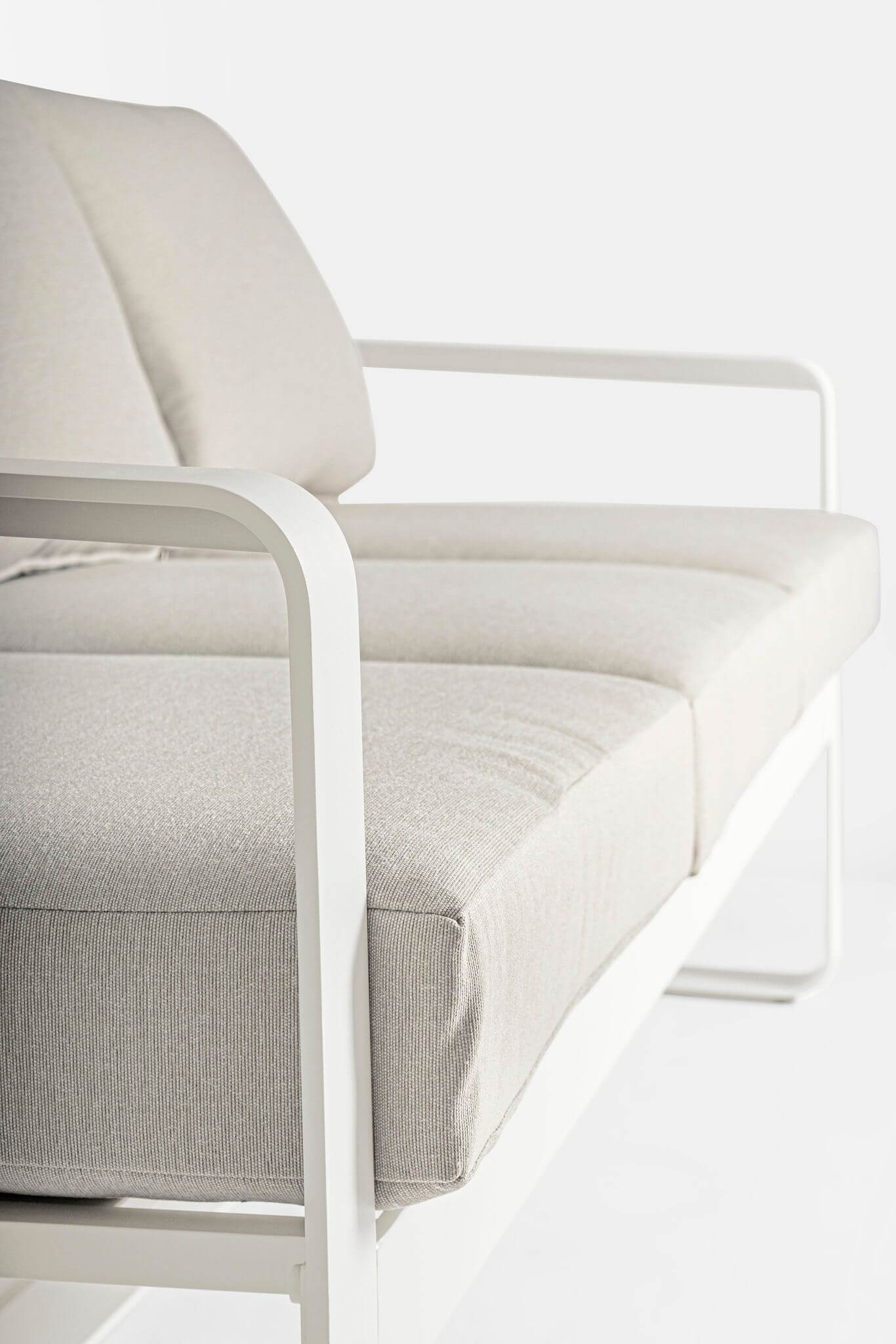 Prezentujemy stylową, białą trzyosobową sofę do ogrodu Merrigan, zaprojektowaną przez włoską markę Bizzotto.
