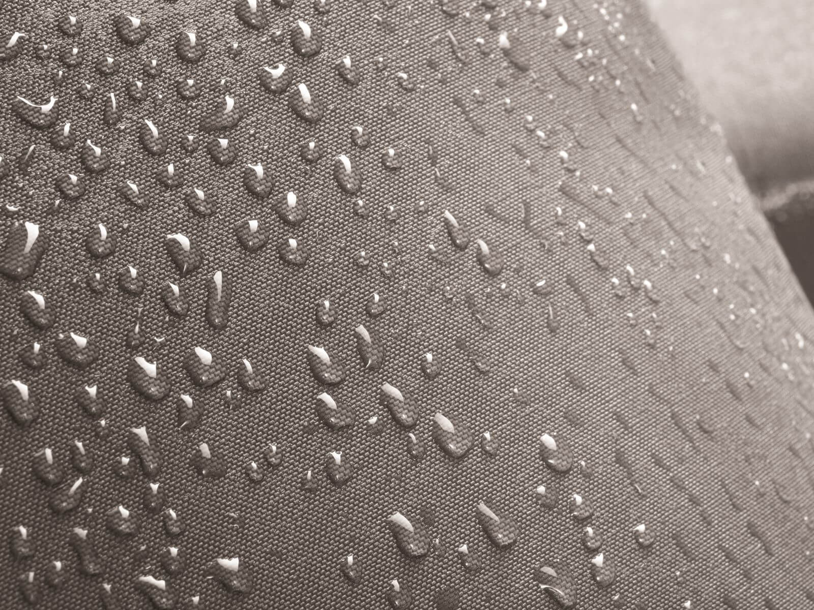 Duża sofa ogrodowa pokryta jest beżową tkaniną Vinylpex (kolor W08), która posiada powłokę hydrofobową, zapobiegającą wchłanianiu płynów. Ponadto materiał jest niezwykle odporny na ścieranie (test Martindale 102500, 695 g/m², skład powłoki: 95% PVC, 5% PU). Tkanina posiada powłokę antybakteryjną.