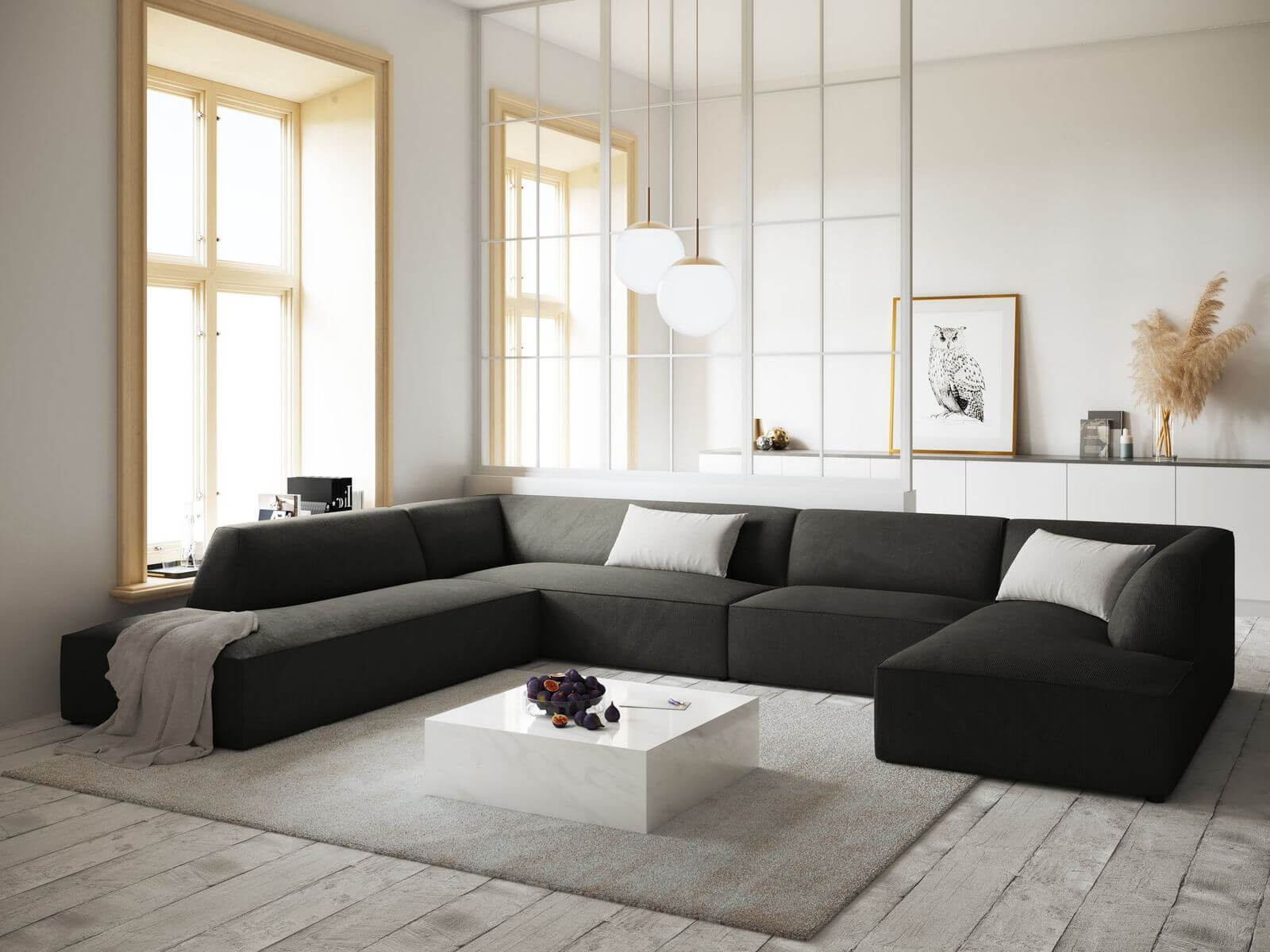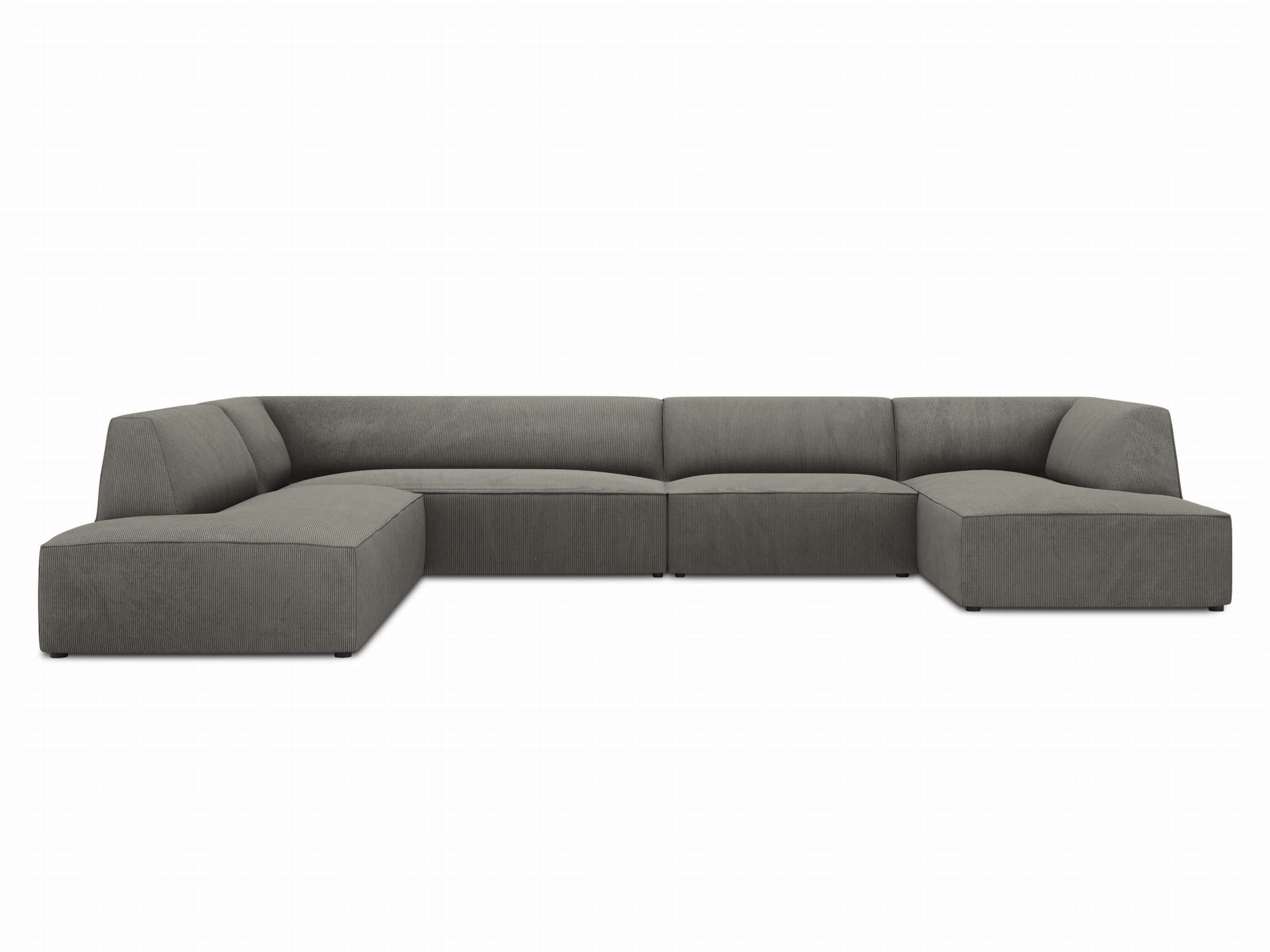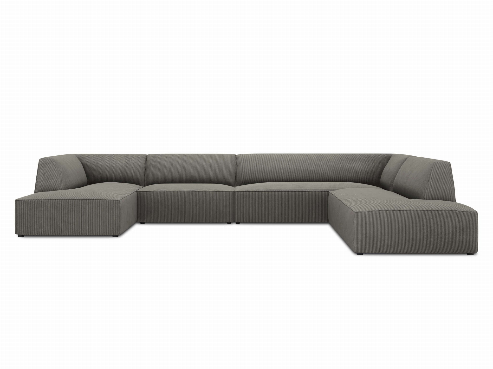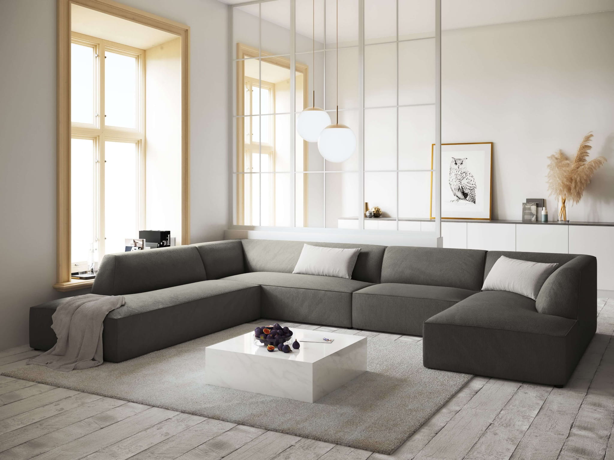 Elegancka i funkcjonalna sofa panoramiczna Ruby w kolorze szarym, wykonana z miękkiego sztruksu.