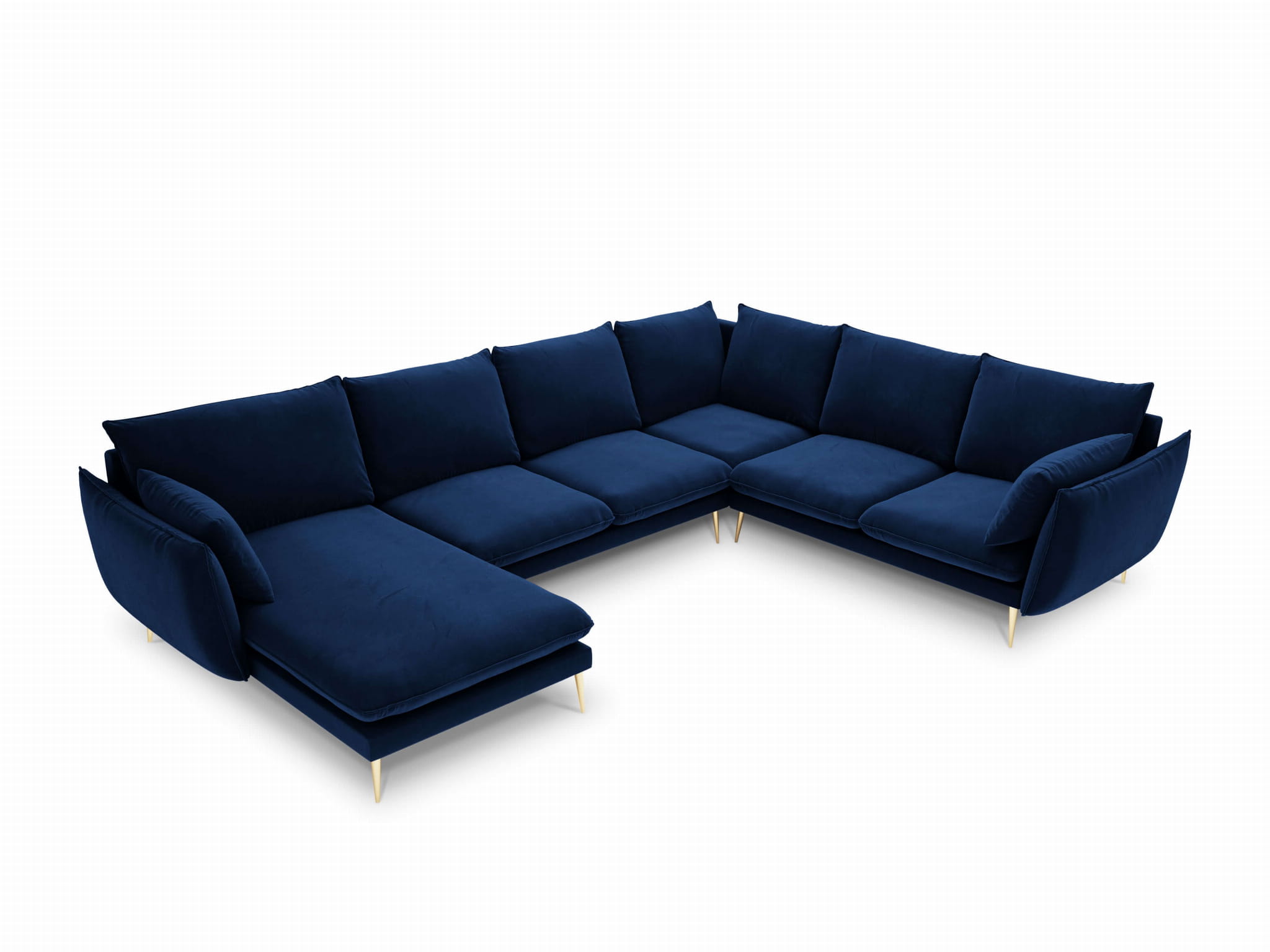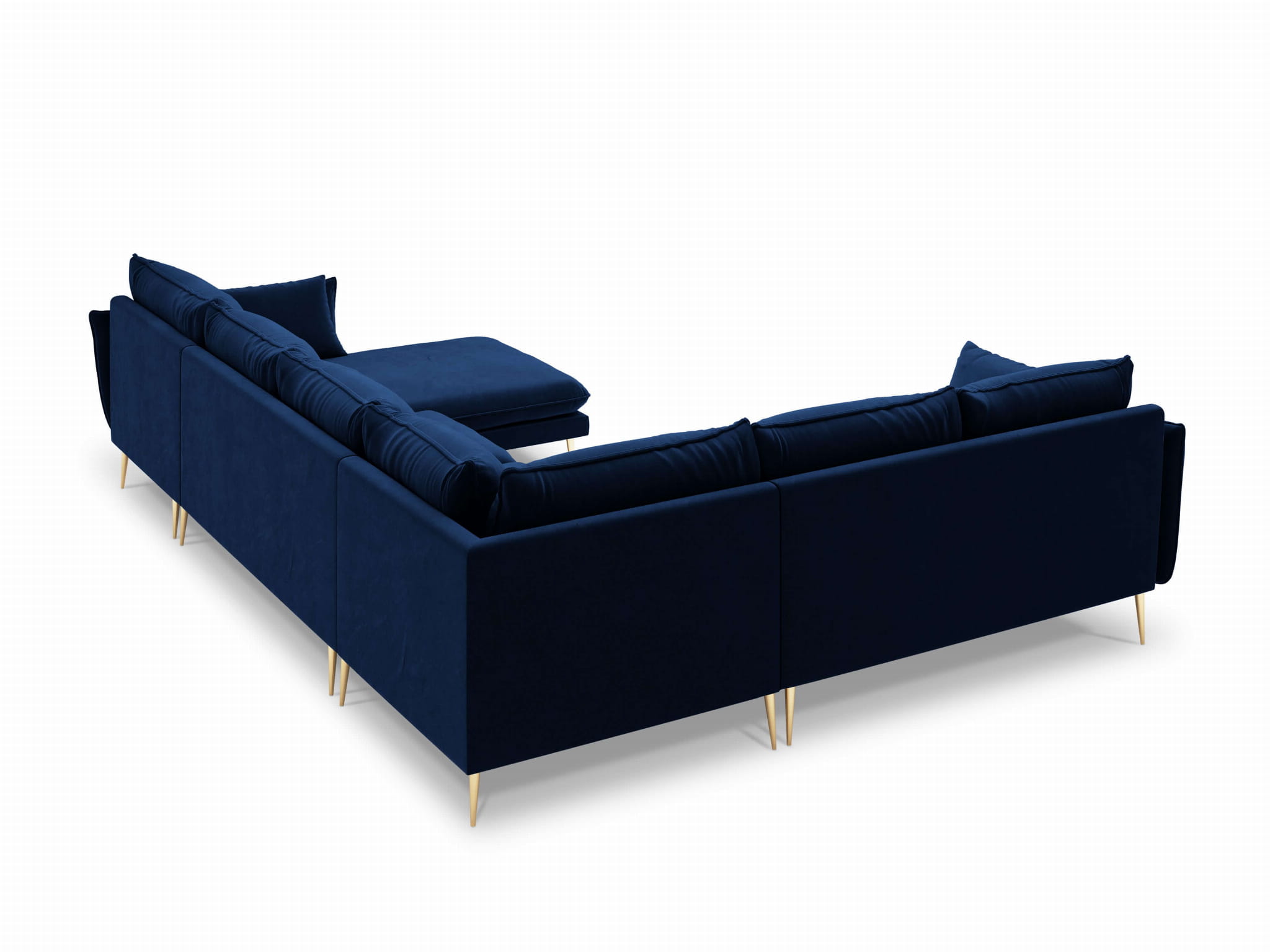 Sofa panoramiczna atramentowy aksamit złote nóżki Elio