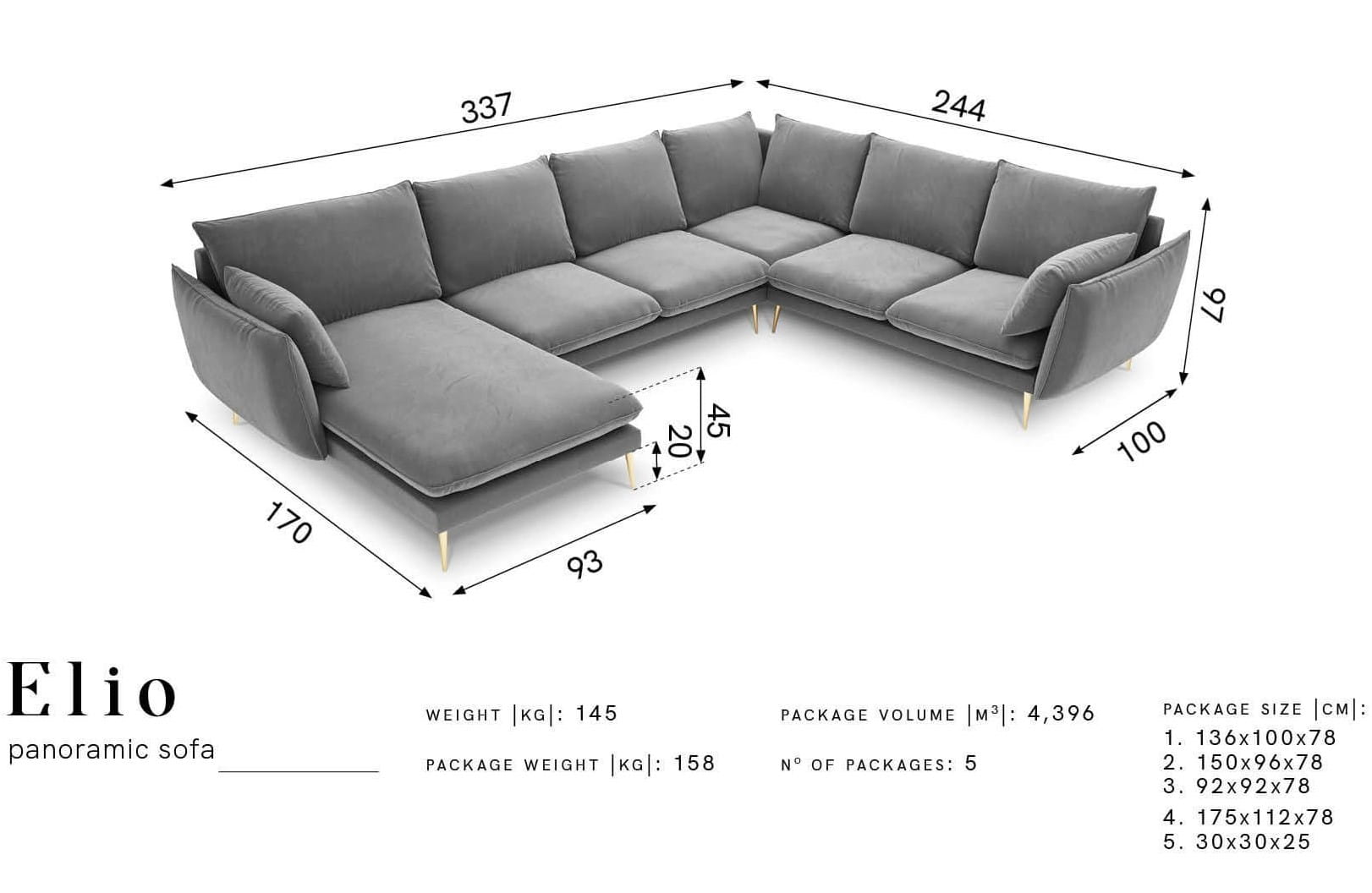 Obszerny narożnik Elio, to mebel reprezentujący klasę i wysoki komfort wypoczynku. Oprócz cech użytkowych przejawia także walory estetyczne, za sprawą których Twoje wnętrze nabierze przytulnej elegancji.