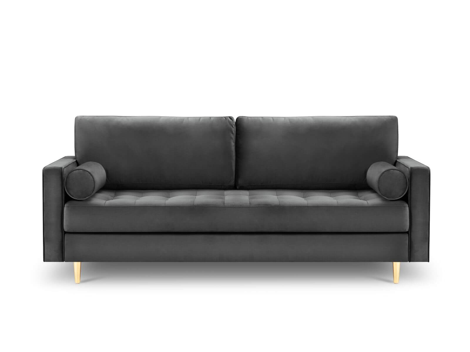 Sofa trzyosobowa Santo aksamit ciemno szara na złotych nóżkach