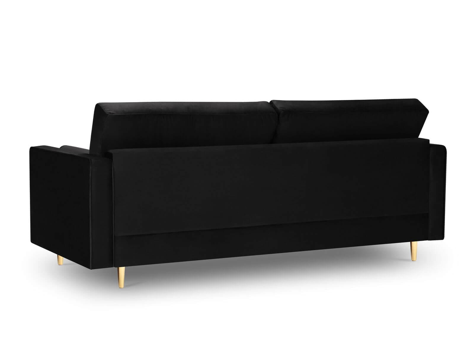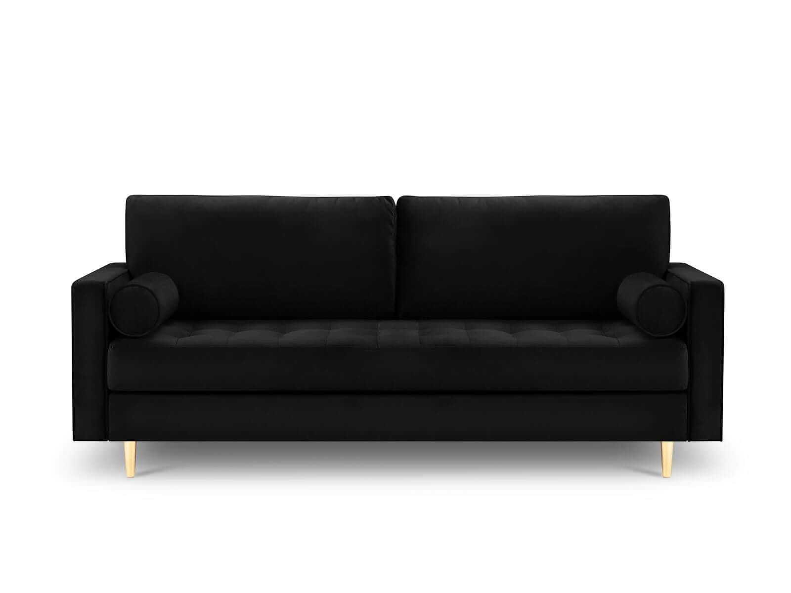 Sofa trzyosobowa pikowana Santo aksamit czarna na złotych nóżkach