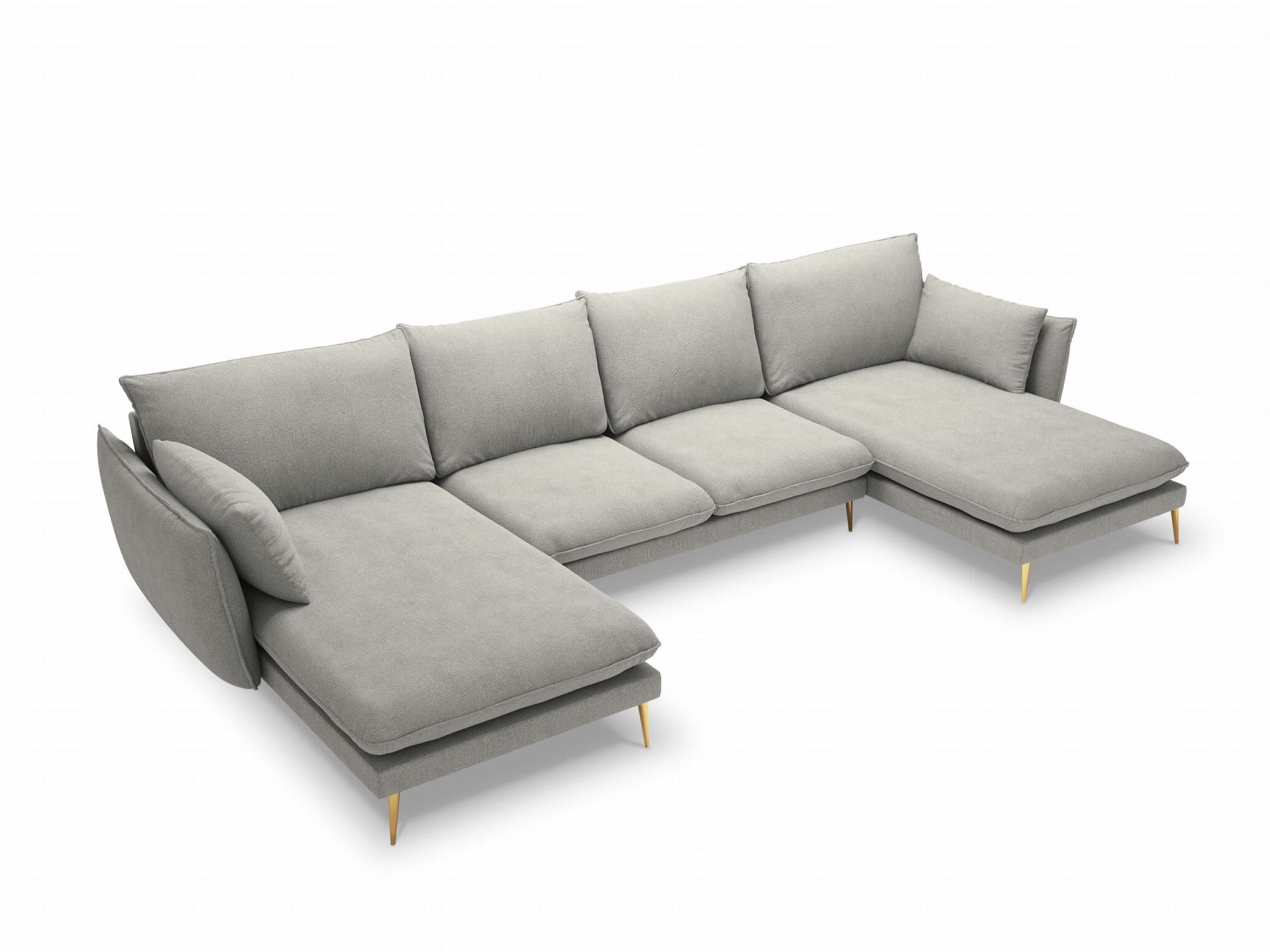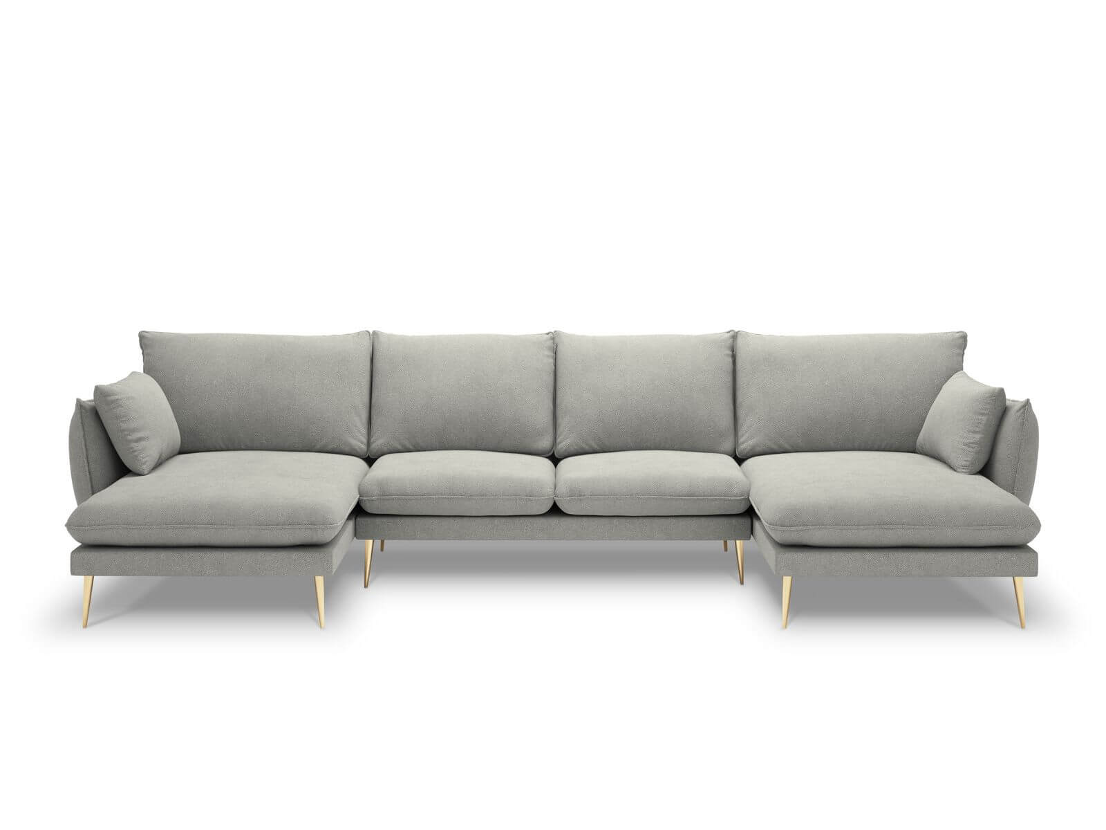 Sofa z dwoma narożnikami Elio strukturalna tkanina jasny szary nóżki złote