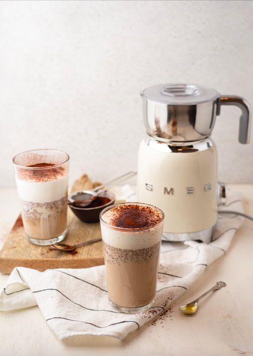 Spieniacz do mleka SMEG pozwoli na wykonanie perfekcyjnej, gęstej i kremowej pianki do cappuccino czy latte macchiato. Dzięki niemu możesz również przyrządzić aromatyczną gorącą czekoladę czy zimną piankę, idealną do koktajli mlecznych. Spieniacz posiada sześć zaprogramowanych funkcji oraz tryb manualny. Ekspresowe przygotowywanie zarówno gorących jak i zimnych napojów, z pianką bądź bez. Wykorzystanie indukcyjnego systemu grzewczego gwarantuje wysoką wydajność urządzenia.