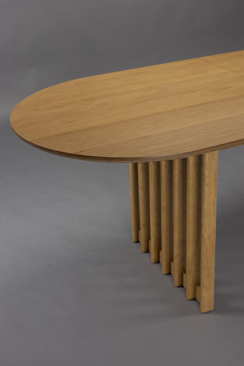 Zamiast czterech nóg stół wyposażony jest w dwie podstawy składające się z równoległych listew, które wprowadzają powiew nowoczesności, zapewniając niezwykle efektowny wygląd. Wykonane zostały z solidnego drewna kauczukowego pokrytego podkładem i lakierem NC (nitrocelulozowego), który gwarantuje trwałość i odporność na działanie czynników zewnętrznych.