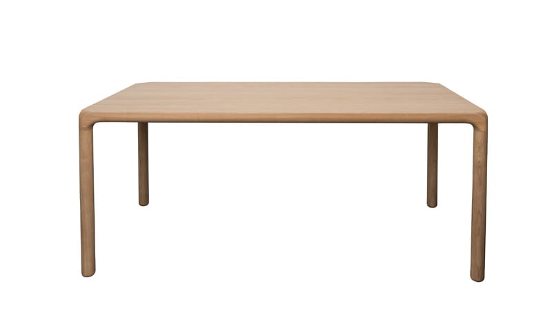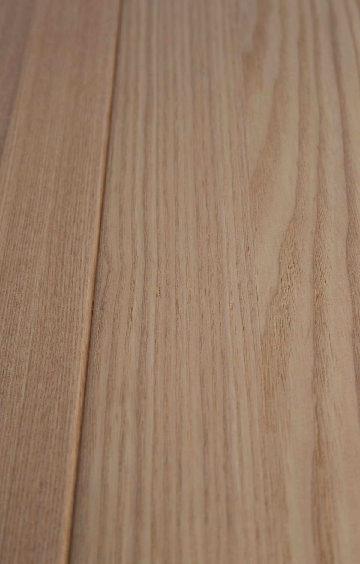 Blat wykonany został z płyty MDF pokrytej jesionowym fornirem o grubości 25 cm, natomiast jego obrzeża to lite drewno jesionowe o grubości 50 cm. Stół wspierają 4 proste nogi, również wykonane z litego drewna, które płynnie zlewają się z blatem, tworząc jednolity, nieco organiczny kształt. Całość została pokryta lakierem, co nie tylko chroni drewno lecz również dodaje głębi i podkreśla jego naturalne piękno.