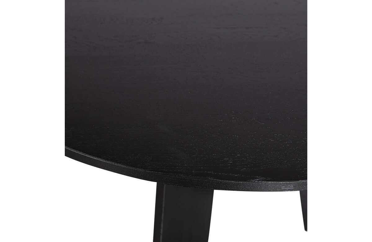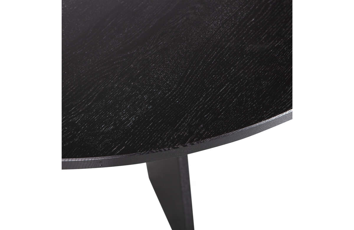 Stół Fries to prawdziwe dzieło sztuki użytkowej, wykonane z dębu FSC z dbałością o każdy detal. Stół wykończony został w czarnym odcieniu blacknight, dzięki czemu prezentuje się niezwykle luksusowo. Przełamaniem miękkich linii blatu są solidne, prostokątne nogi, które wyraźnie kontrastują z okrągłymi kształtami i tworzą ciekawą, geometryczną formę. Matowoczarny odcień i solidna podstawa nadają stołu charakteru i męskiego wyglądu.