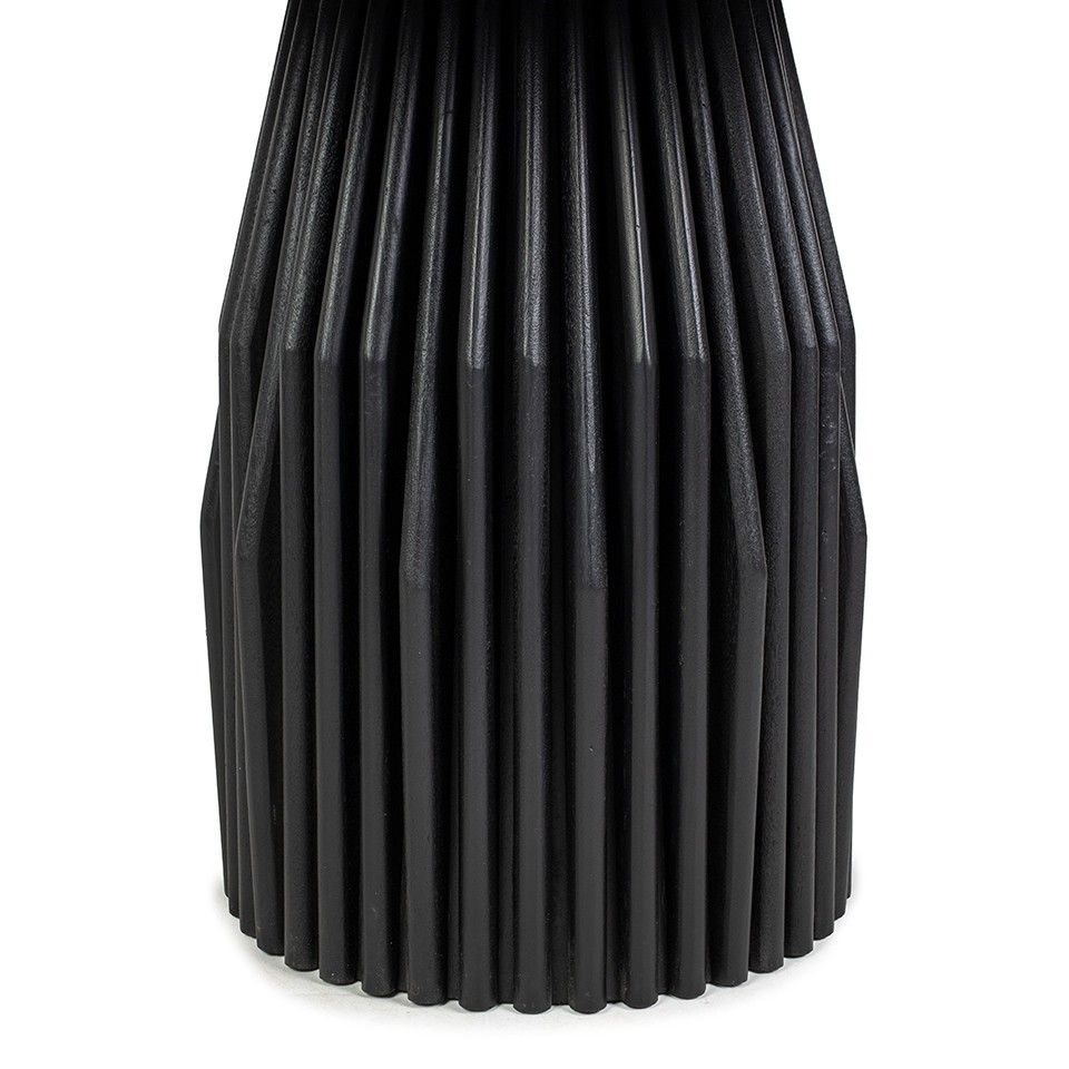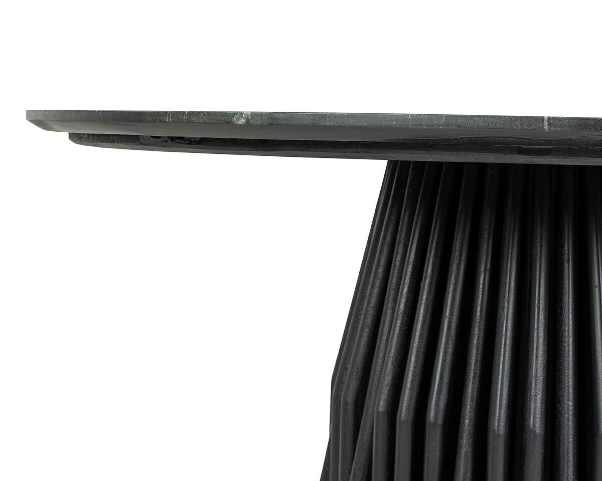 Podstawa stołu to solidny filar wykonany z drewna mango, którego ciemna powierzchnia została precyzyjnie wyżłobiona, tworząc dynamiczny, rytmiczny wzór. Ten architektoniczny detal sprawia, że mebel staje się nie tylko praktycznym centrum jadalni, ale też dekoracyjnym punktem całej aranżacji. Rzeźbiarska forma podstawy świetnie komponuje się z minimalistycznymi przestrzeniami, jak i bardziej eklektycznymi wnętrzami.
