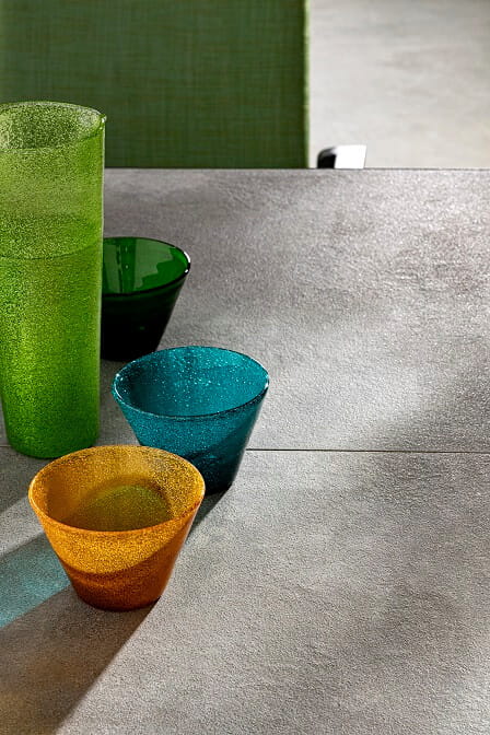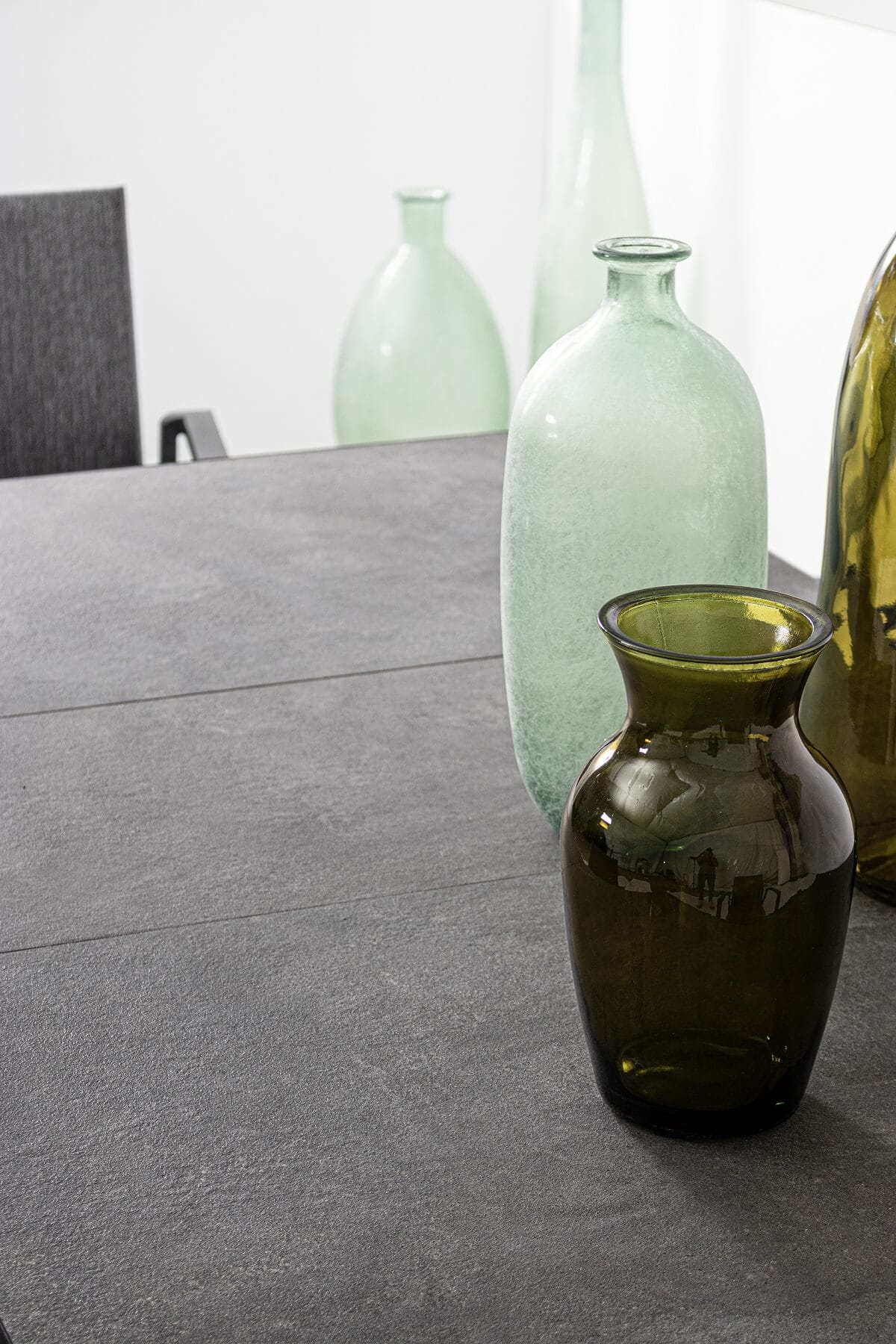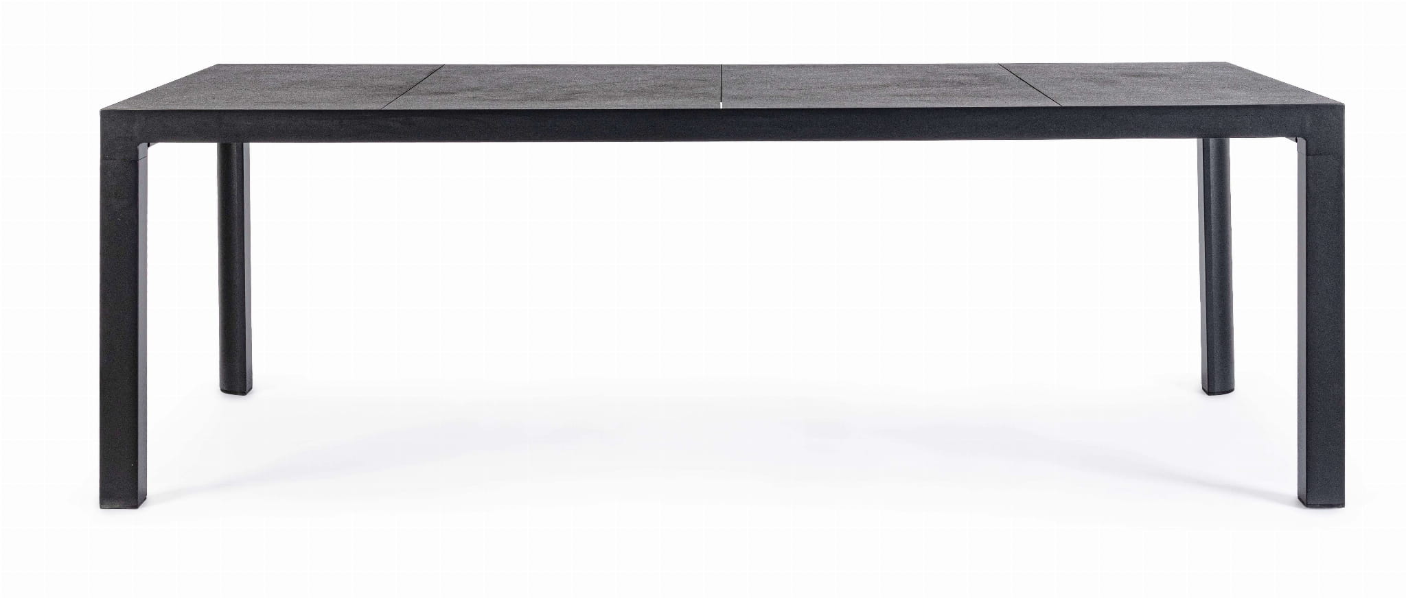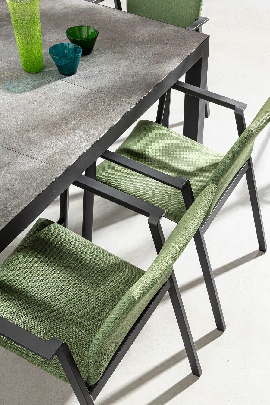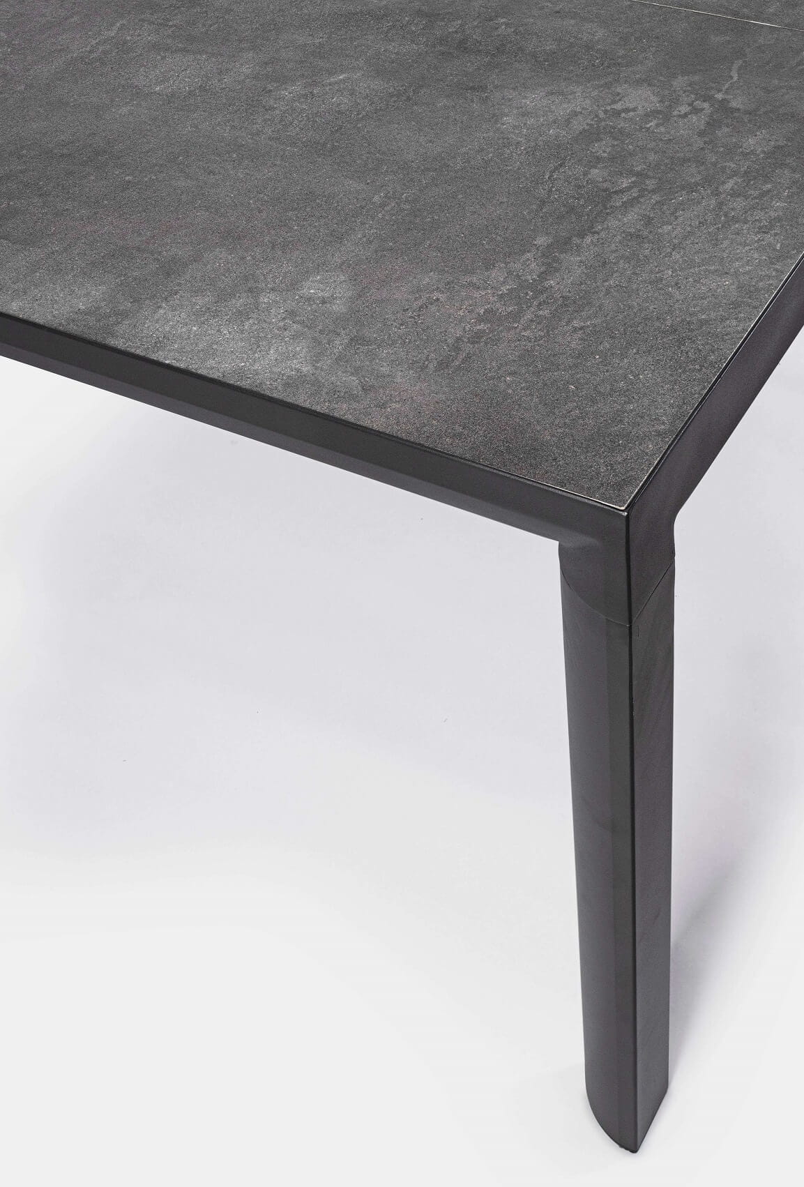 Mebel posiada solidną ramę wykonaną z aluminium, pokrytą proszkową poliestrową powłoką, zapewniającą odporność na warunki atmosferyczne. Blat stołu wykonany jest z ceramiki o grubości 10 mm.