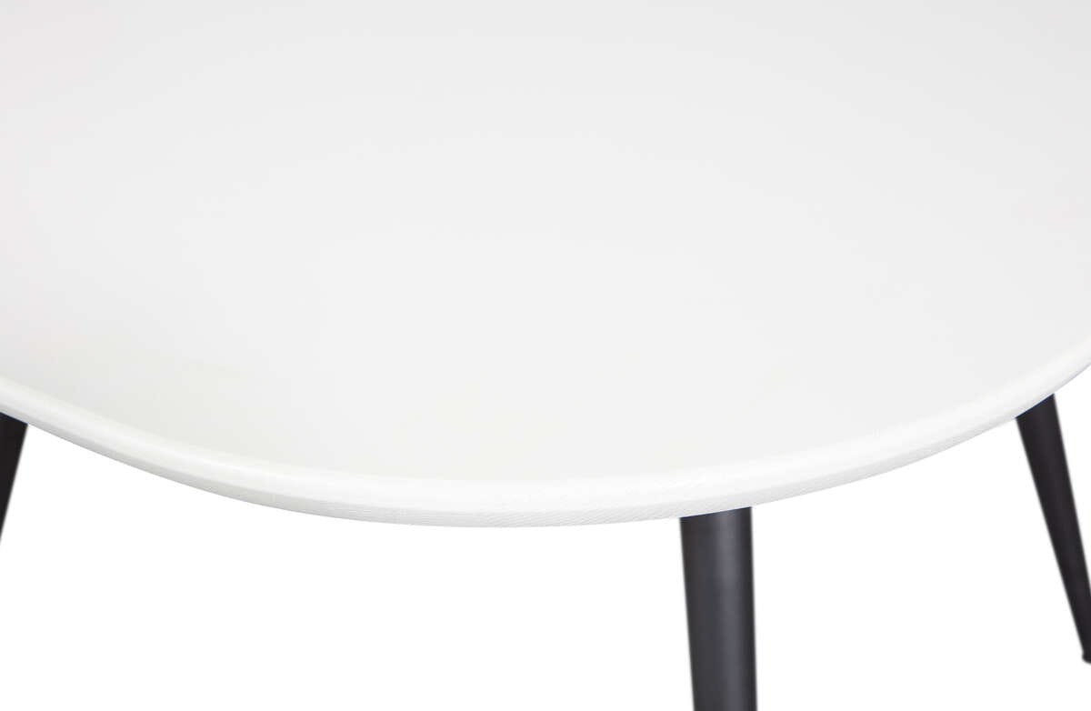 Klasyczna czerń tworzy widoczny kontrast z białym blatem, a to zestawienie kolorystyczne jest uniwersalne i wpasuje się w większość aranżacji. Rozszerzające się nogi zapewniają dobrą stabilizację a najwyższej jakości materiały pozwolą na długie lata użytkowania.