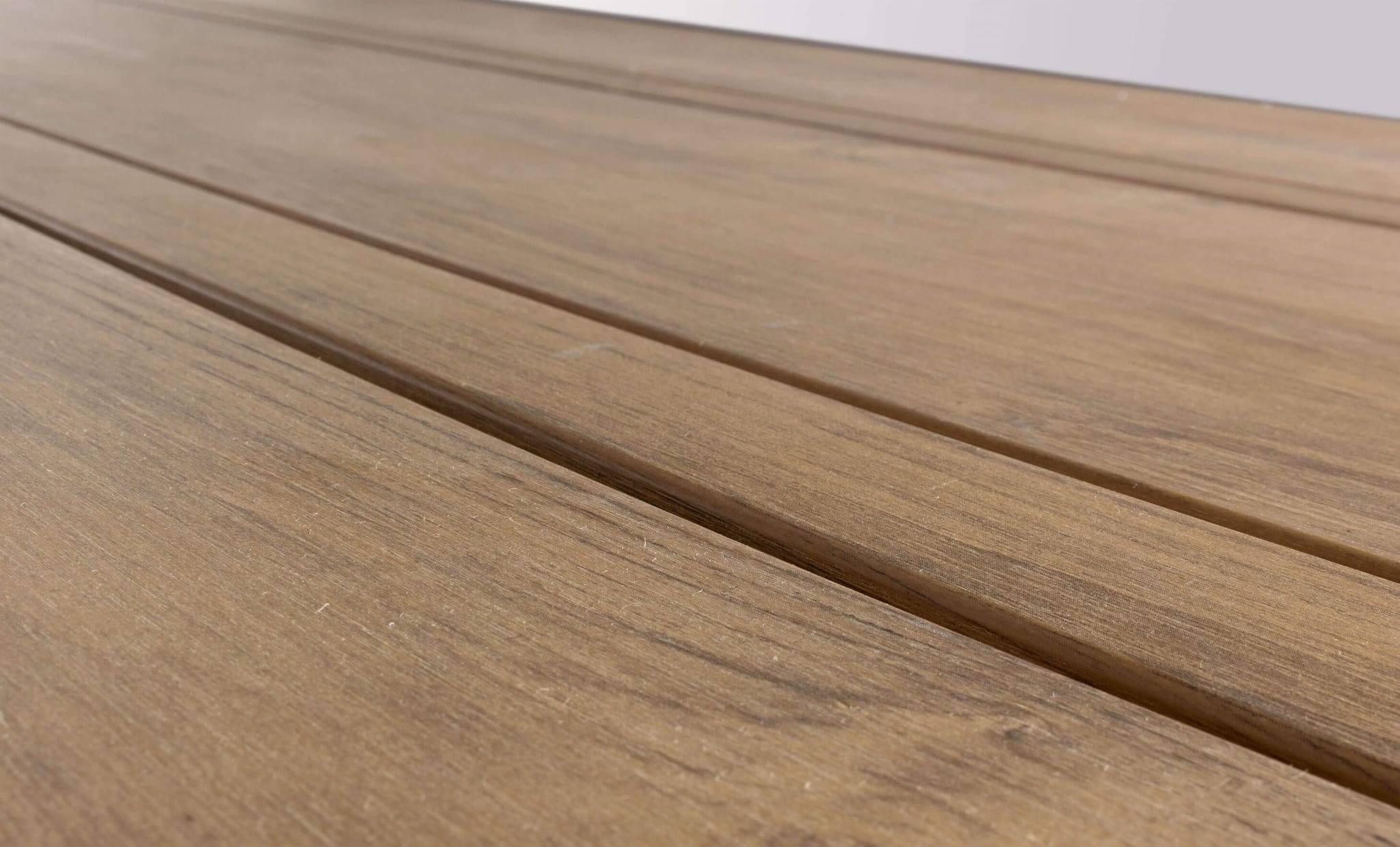 Wykonany z aluminium o trwałej powłoce poliestrowej, stół zapewnia zwiększoną odporność na warunki atmosferyczne. Blat stołu wykonany jest z poliwęglanu (kompozytu przypominającego drewno) w kolorze teakowym, co nadaje mu elegancji i przytulności.