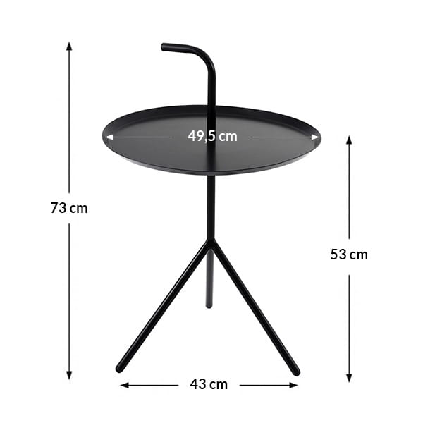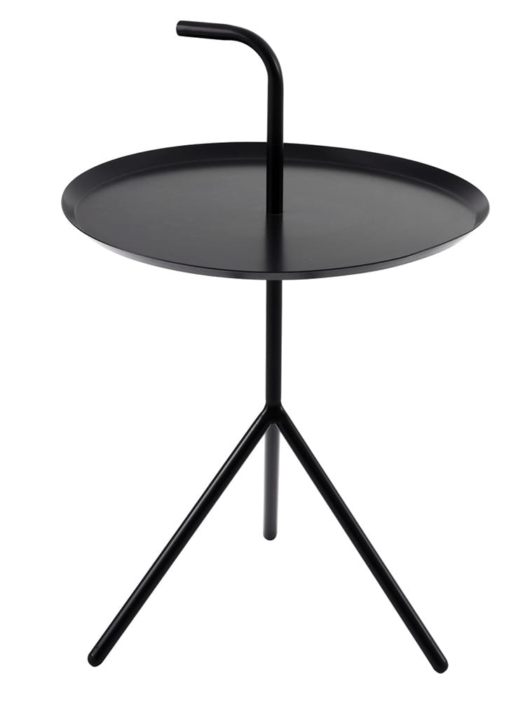Blanco w czarnym kolorze wyróżnia się nietypową formą, która wniesie do wnętrza oryginalny akcent.Ten stolik kawowy nie wyróżniałby się niczym szczególnym, gdyby nie jeden istotny detal. Sporo zamieszania do tego minimalistycznego skądinąd projektu wprowadza designerska a zarazem funkcjonalna rączka umieszczona w środku okrągłego blatu. Mebel ten może posłużyć jako stolik kawowy w salonie lub biurze, a także jako nowoczesny stolik nocny w sypialniach urządzonych w stylu industrialnym lub vintage. Dodatkową zaletą stolika jest uniesiona krawędź blatu zabezpieczająca przedmioty przed zsunięciem się z niego oraz rączka, która ułatwia jego przenoszenie. Stolik został wykonany z metalu lakierowanego proszkowo na kolor czarny.