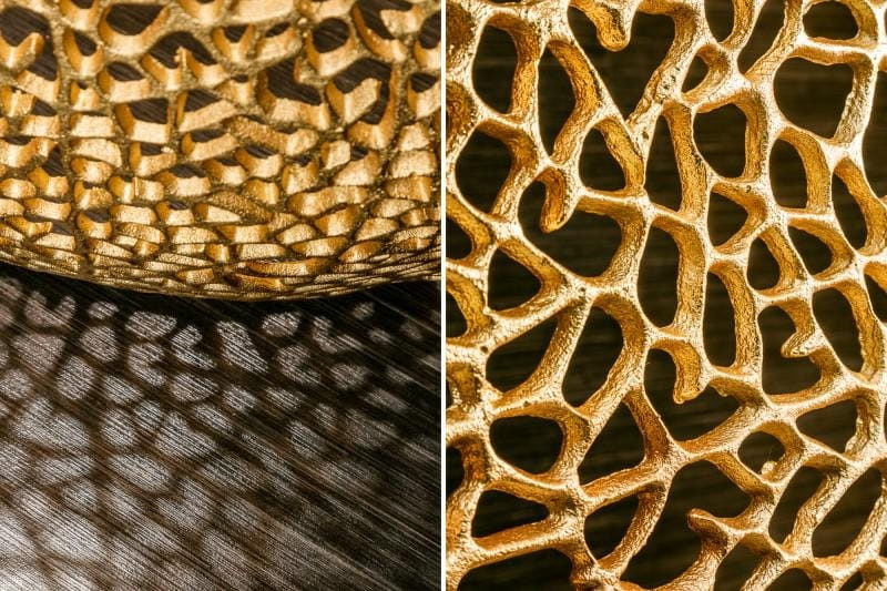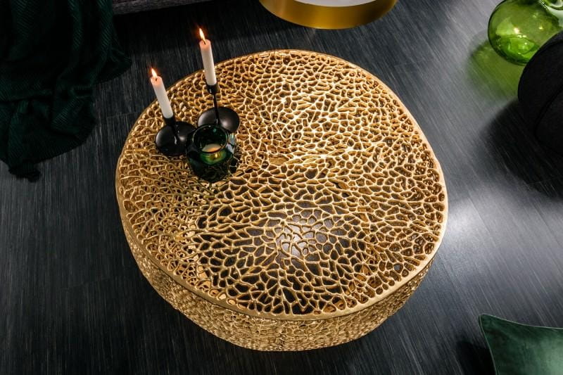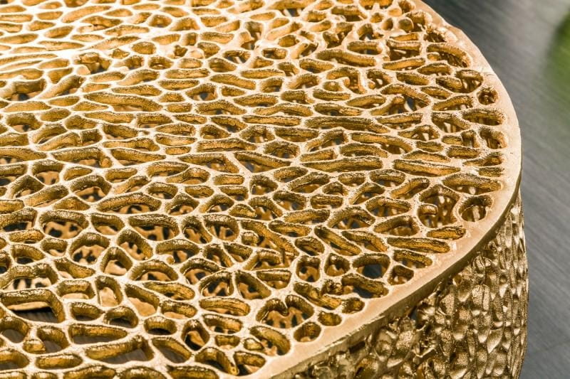 Ażurowy stolik wykonywany jest ręcznie, dlatego też, każdy stolik jest wyjątkowy i jedyny w swoim rodzaju. Tak doskonałą i finezyjną konstrukcje dodatkowo podkreśla złoty kolor, który sprawia, że stolik nabiera jeszcze większej klasy.