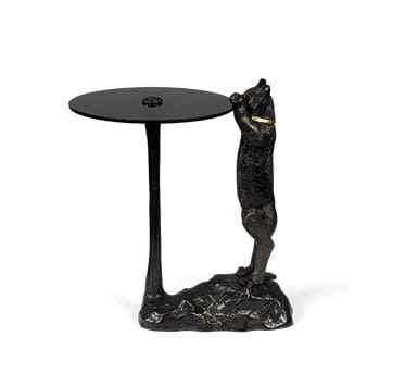 Stolik z niedźwiedziem trzymającym drewno, nie jamnikiem