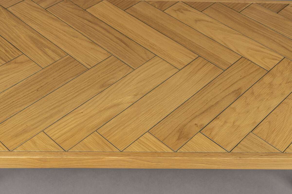 Wykonany z płyty MDF z fornirem z drewna dębowego oraz wykończony dębową powłoką PU. Nogi stylizowane ze stali malowanej proszkowo w kolorze klasycznej czerni. Solidne i dokładne wykończenie stolika zapewnia stabilność i wytrzymałość na wiele lat.