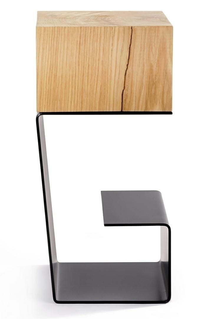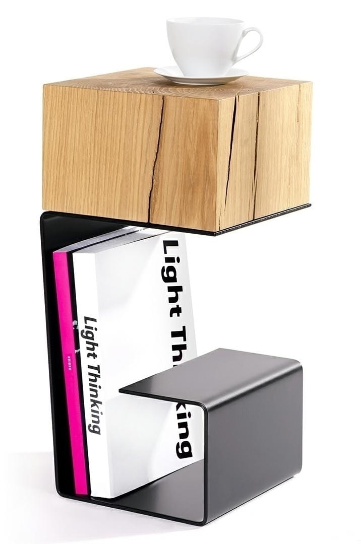 Po raz kolejny okazuje się, że drewno i metal doskonale się dogadują. Oba te materiały mają surowy charakter i razem tworzą coś w swojej istocie pierwotnego i intrygującego. W stoliku kawowym Egon do wytworzenia blatu wykorzystano drewno kilkuletniego, sezonowanego dębu. Dzięki temu, że nie starano się na siłę go uładzić, zachowało ono swój naturalny wygląd, ze szczelinami, nierównościami i sękami. To dodaje mu autentyczności i unikatowości. Oryginalny styl całości potęguje gięta metalowa podstawa, która może pełnić rolę półki na książki lub magazyny. Model dostępny jest w dwóch wersjach kolorystycznych - z białą i czarna podstawą.