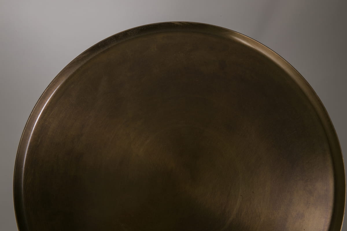 Żelazny mosiężny stolik z antycznym wykończeniem oraz pokryty przeźroczystą powłoką proszkową, daje gwarancję wysokiej jakości i stabilności produktu. Jego blat został wykończony łagodnie zaokrąglonym brzegiem. Smukłe, strzeliste, mosiężne nogi stanowią stabilny stelaż. Połączenie złota z antycznym design'em, sprawia, że z łatwością skomponuje się z pozostałymi elementami wystroju wnętrza i jeszcze bardziej podkreśli charakter i wyjątkowość danego miejsca.
