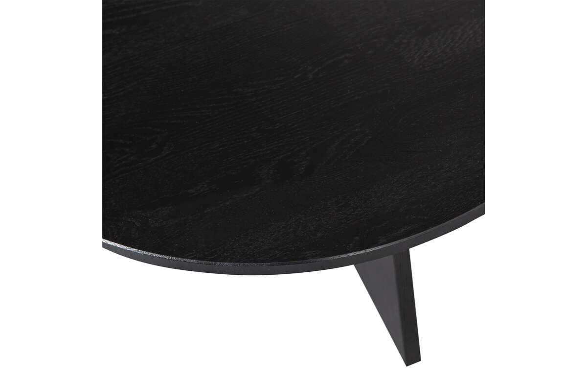 Stół Fries to prawdziwe dzieło sztuki użytkowej, wykonane z dębu FSC z dbałością o każdy detal. Stół wykończony został w czarnym odcieniu blacknight, dzięki czemu prezentuje się niezwykle luksusowo. Przełamaniem miękkich linii blatu są solidne, prostokątne nogi, które wyraźnie kontrastują z okrągłymi kształtami i tworzą ciekawą, geometryczną formę. Matowoczarny odcień i solidna podstawa nadają stolikowi charakteru i męskiego wyglądu.