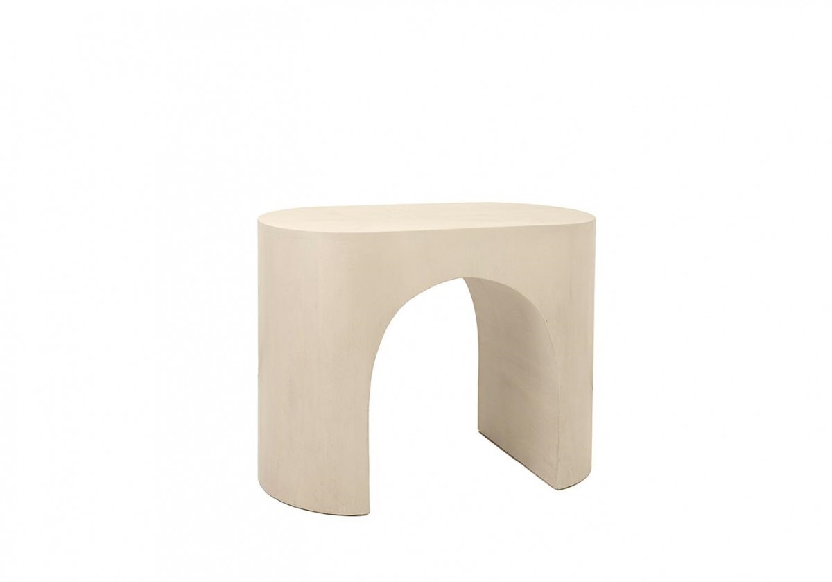 Obły blat o miękkiej linii i łukowe wycięcie w podstawie przywodzą na myśl formy inspirowane współczesną rzeźbą oraz architekturą śródziemnomorską. Beżowa kolorystyka podkreśla naturalny, spokojny charakter mebla, sprawiając, że doskonale odnajduje się w aranżacjach w stylu japandi, modern organic czy skandynawskim.