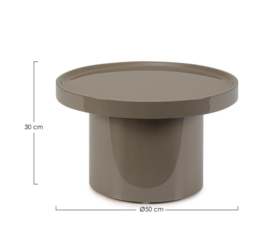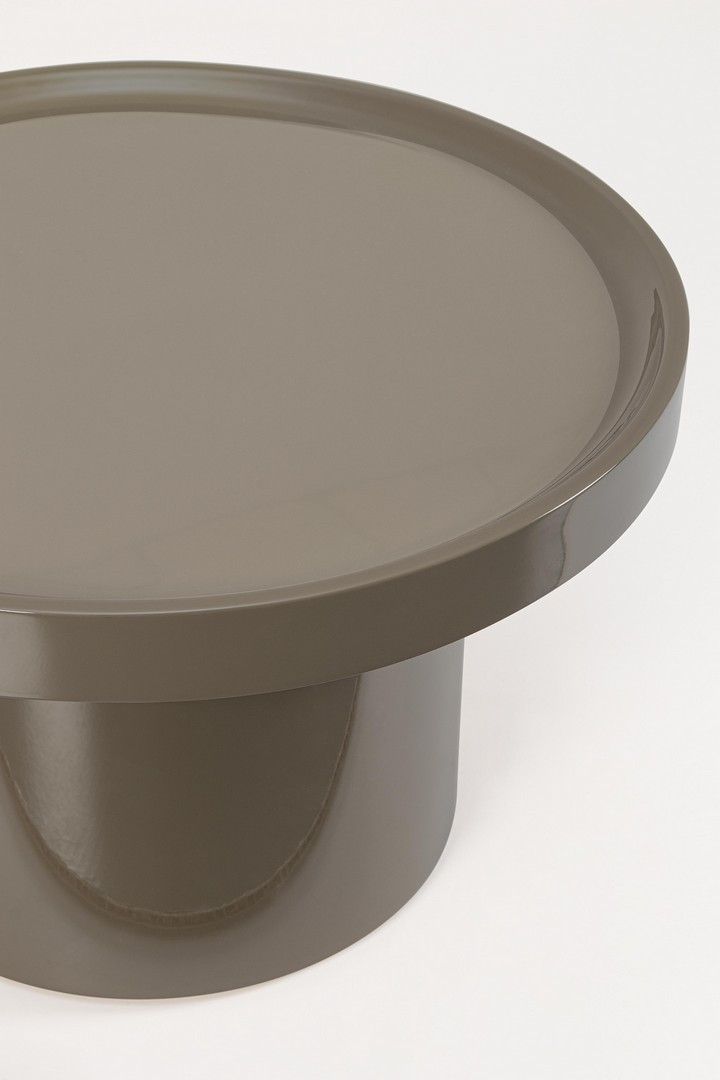 Elegancja w nowoczesnym wydaniu - okrągły stolik kawowy Otilia Herb Ro łączy minimalistyczną formę z wyrazistym charakterem. Geometryczna podstawa w cylindrycznym kształcie subtelnie kontrastuje z szerokim, płaskim blatem, tworząc harmonijną całość. Dzięki błyszczącemu wykończeniu w technologii lakieru poliuretanowego cała bryła zyskuje głębię i luksusowy połysk, który pięknie odbija światło.