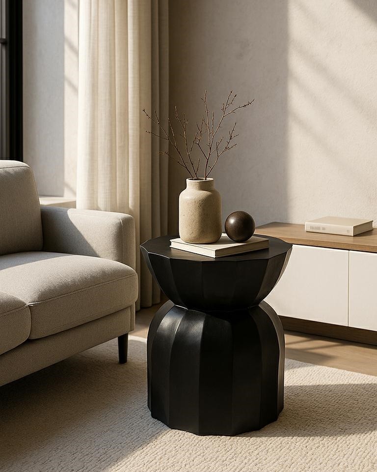 Rolling to stolik, który łączy nowoczesny design z subtelną elegancją i naturalnym pięknem drewna mango. Jego unikalna forma – inspirowana rzeźbą – przyciąga wzrok geometryczną sylwetką z charakterystycznym zaokrągleniem i pionowym żłobieniem. To mebel, który z powodzeniem pełni funkcję praktycznego stolika pomocniczego, ale również wyróżnia się jako element dekoracyjny.