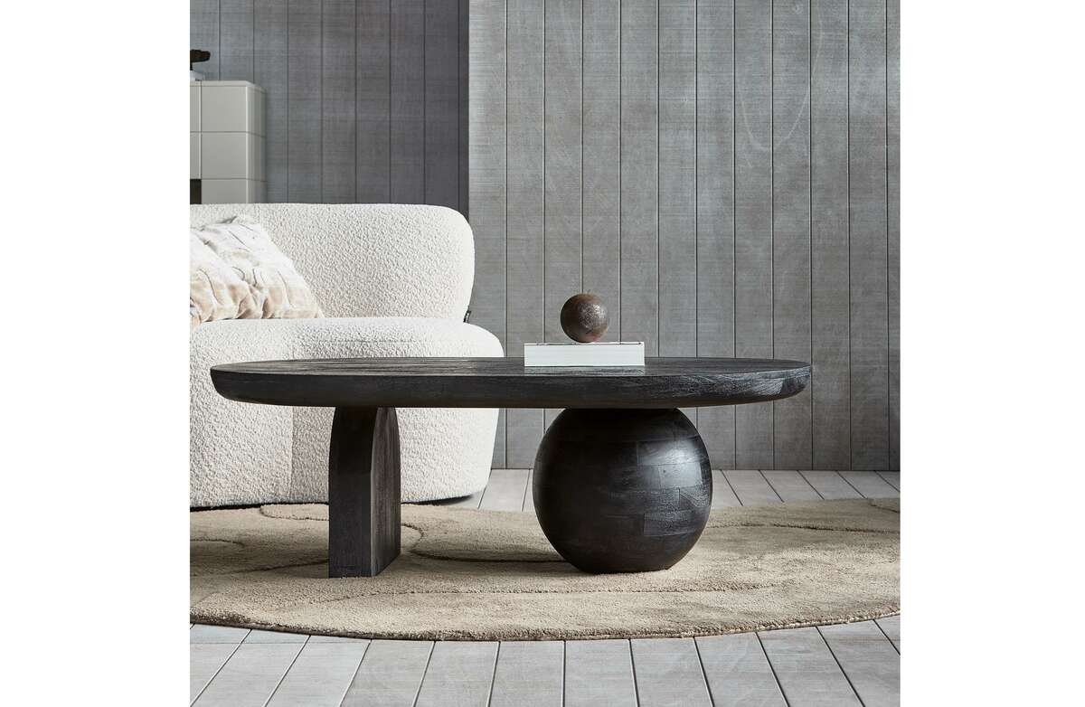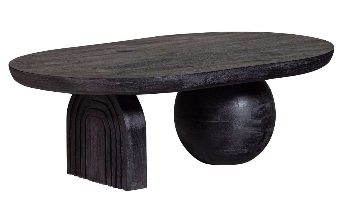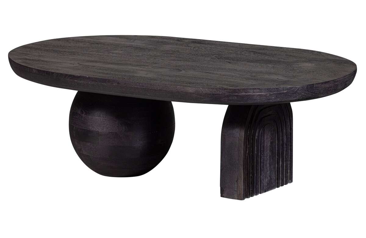 Elementami, które nadają stolikowi efektownego charakteru są bez wątpienia jego nogi. Jedna z nich ma formę obszernej kuli, zaś druga tworzy geometryczne kręgi, nawiązujące do sztuki plemion afrykańskich. Zestawienie blatu o organicznym kształcie z geometrycznymi nogami nadaje całości ekscentrycznego charakteru i wprowadza do wnętrza estetykę pełną kontrastu i dynamiczności. Miękkie, okrągłe linie wprowadzają harmonię w tym chaotycznym zestawieniu kształtów i struktur.